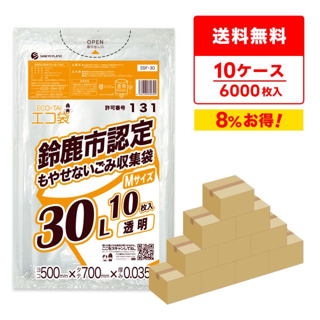 【まとめて10ケース】SSF-30-10 鈴鹿市指定袋 もやせないごみ用 30リットル Mサイズ 0.035mm厚 透明 10枚x60冊x10箱/ ゴミ袋 ごみ袋 送料無料