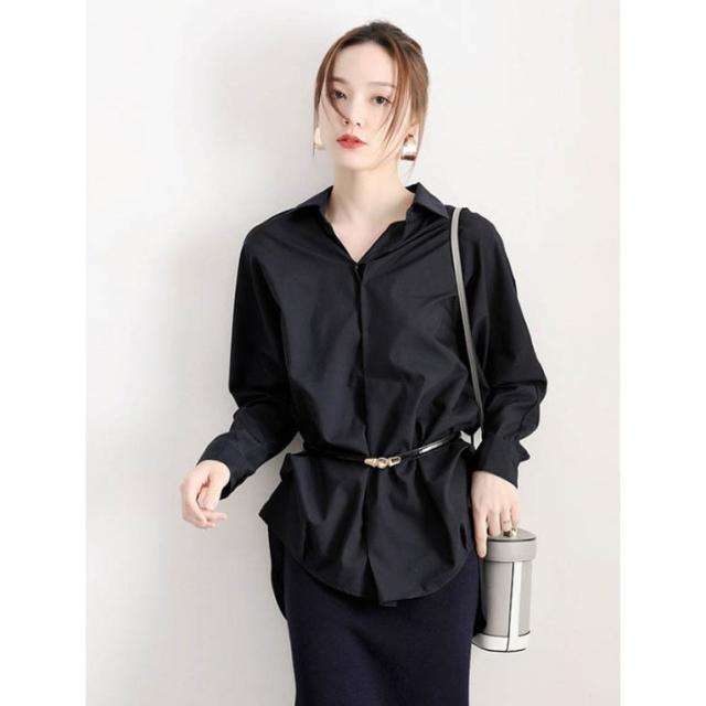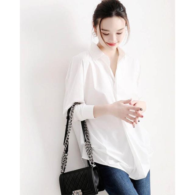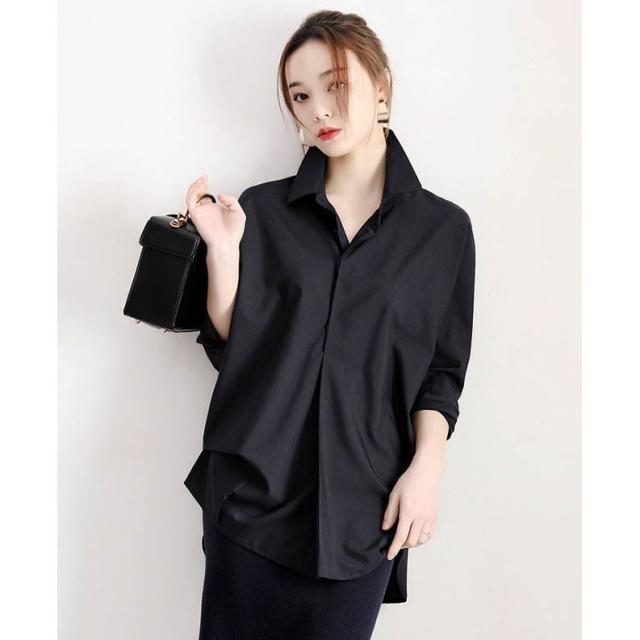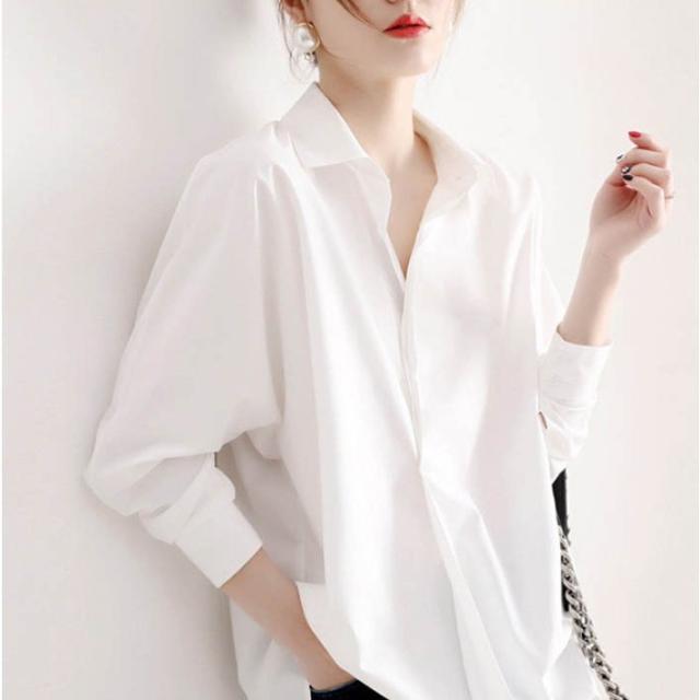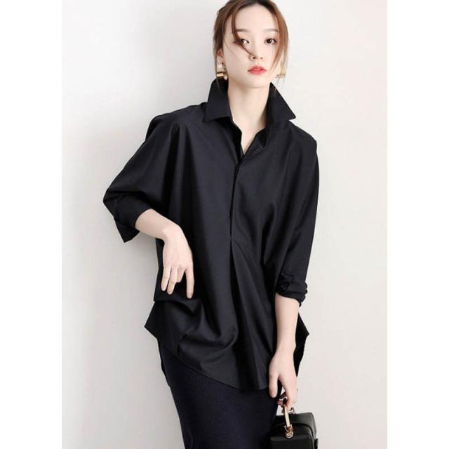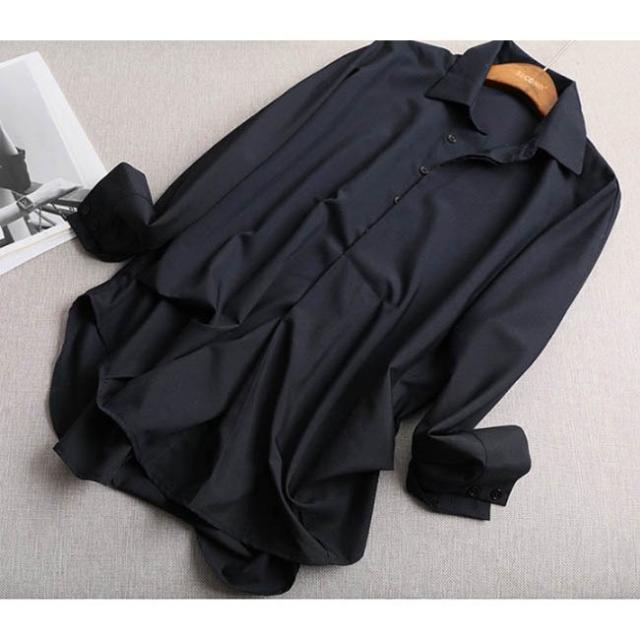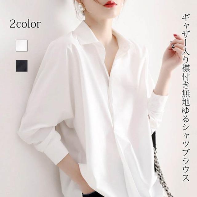 シャツブラウス レディース ブラウス シャツ 白シャツ ホワイトシャツ 長袖 チュニック シンプル ゆったり 襟付き 黒白 レディース トップス