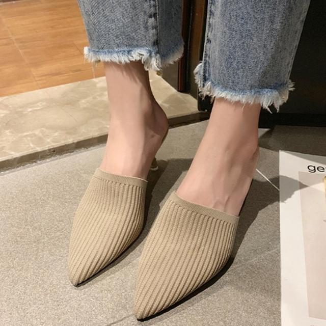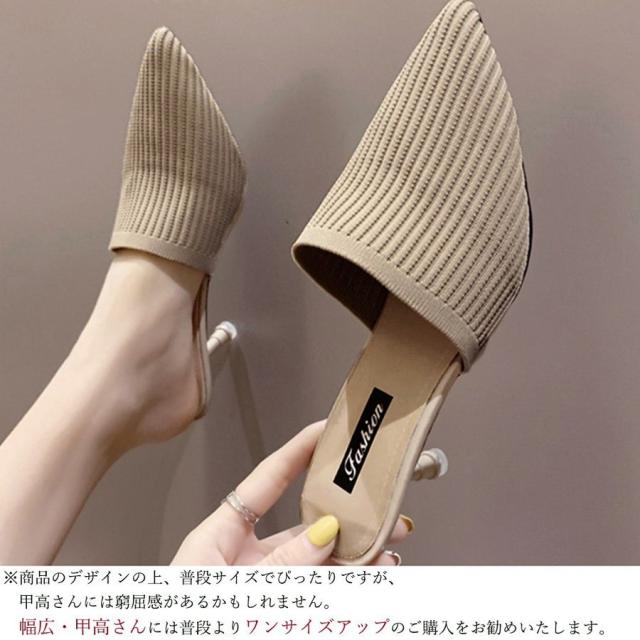 ミュールパンプスサンダル レディース ヒールサンダル ポインテッドトゥ 靴 サボサンダル かかとなしパンプス 春夏