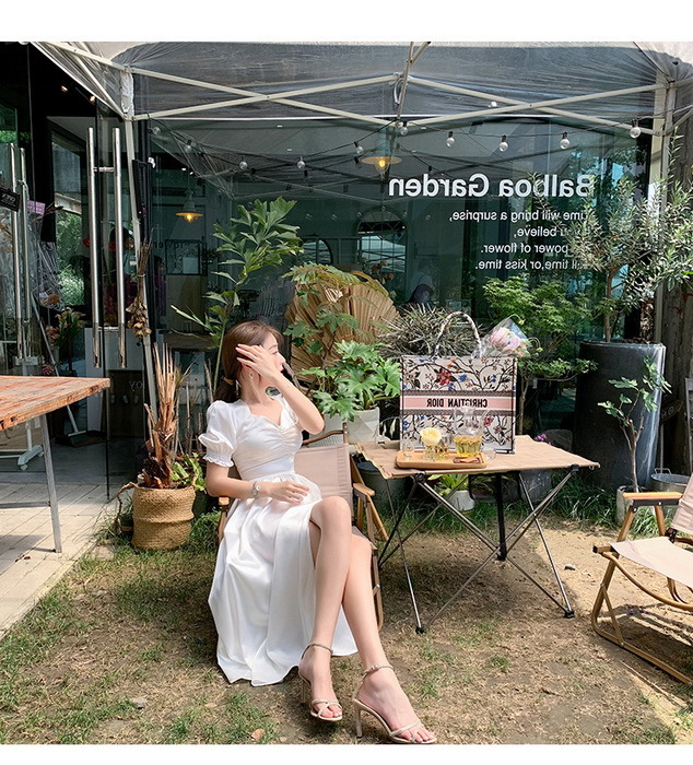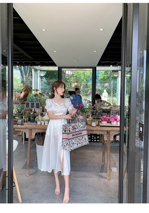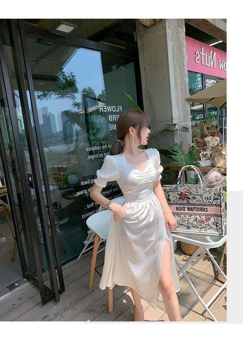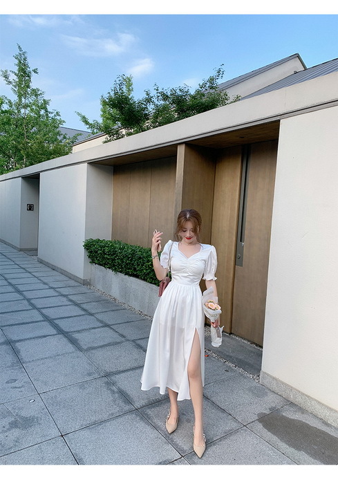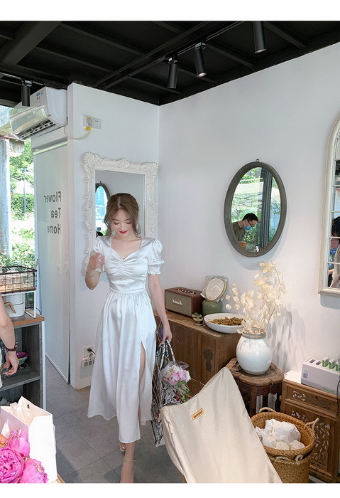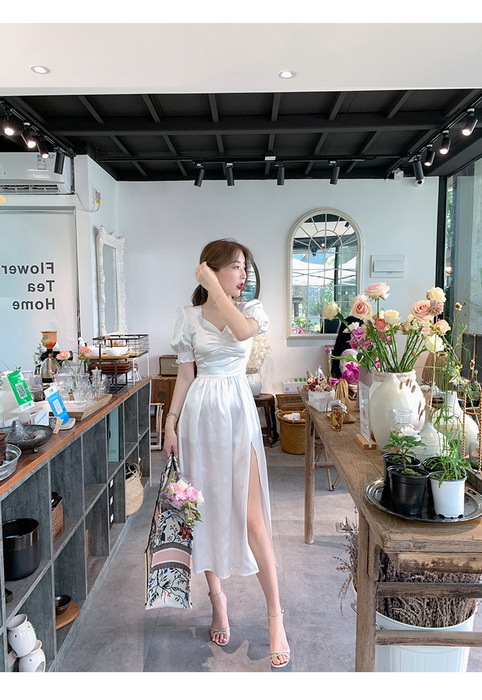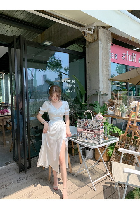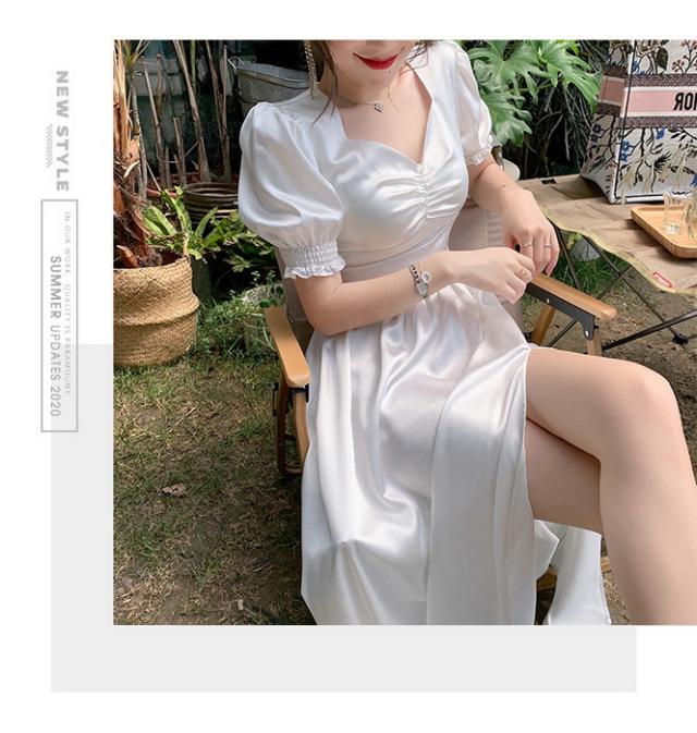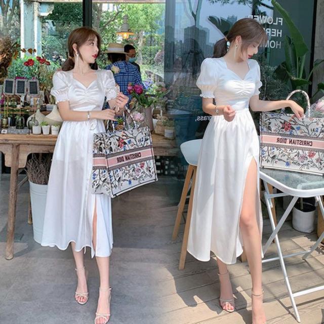 ワンピース レディース 40代 マキシワンピース 春夏新作 半袖ワンピース パフスリーブワンピース スリットスカート オシャレ韓国風 結婚式 お出かけ 30代50代