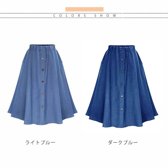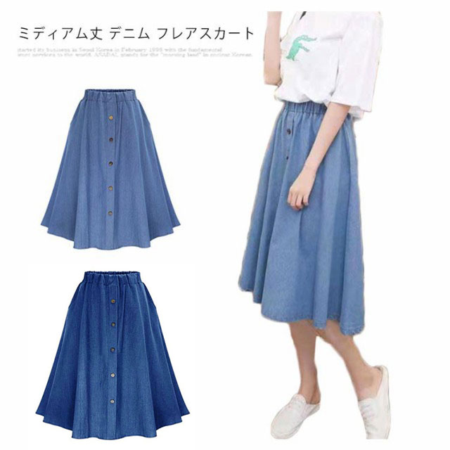 デニムスカート レディース フレアスカート デニム調 ロングスカート ミディアム丈 スカート ミモレ丈 膝丈 体型カバー aライン ハイウエスト 春 夏 送料無料 大人 ウエストゴム 20代 30代 40代 OL
