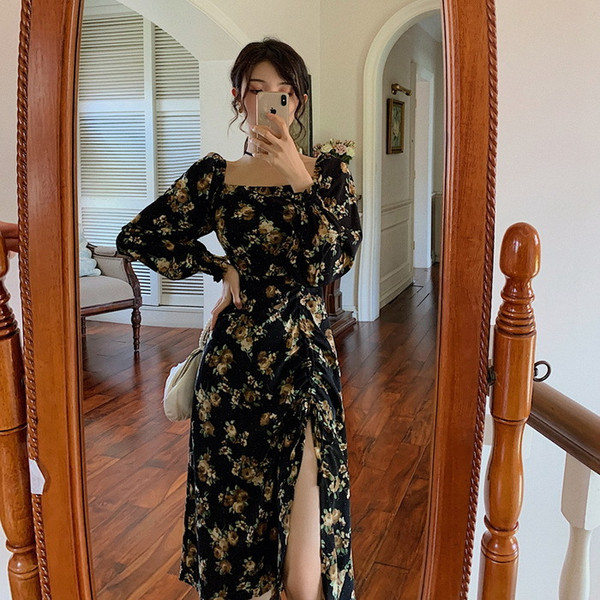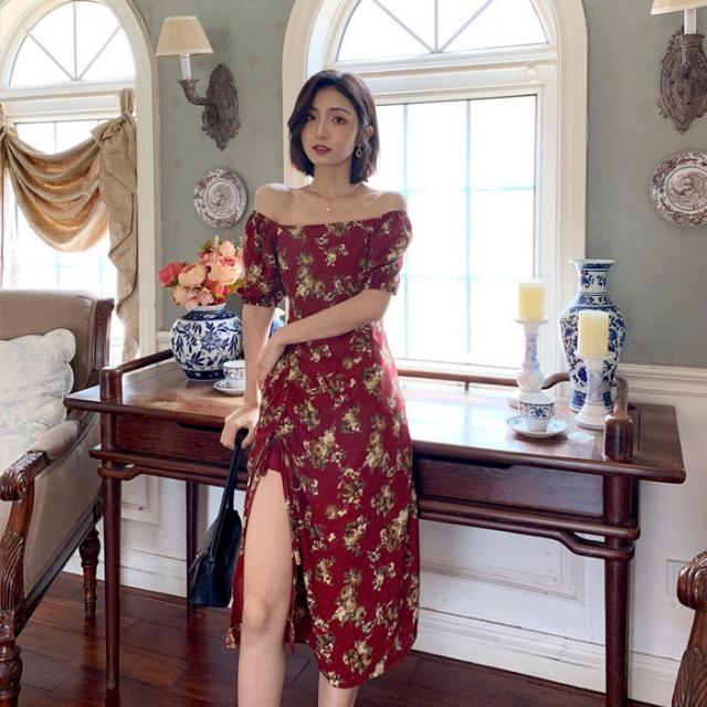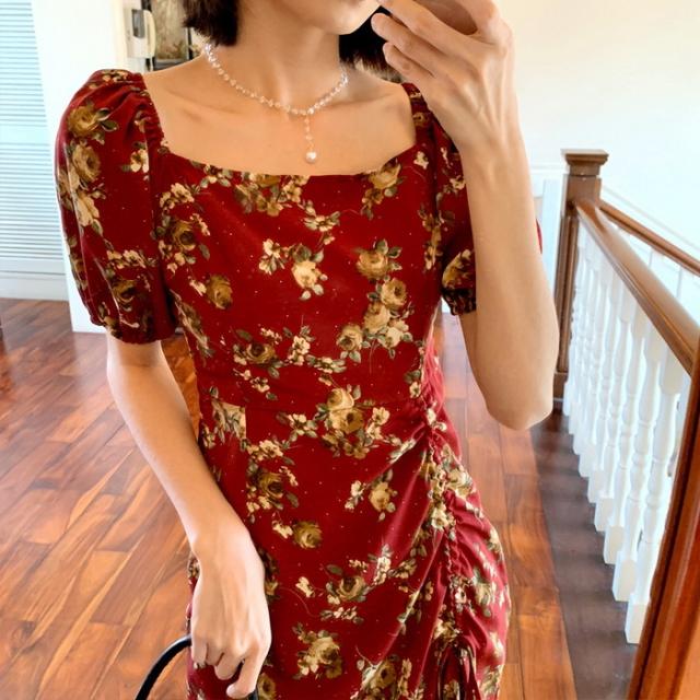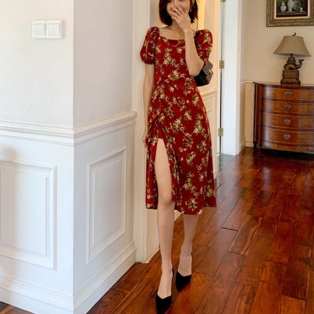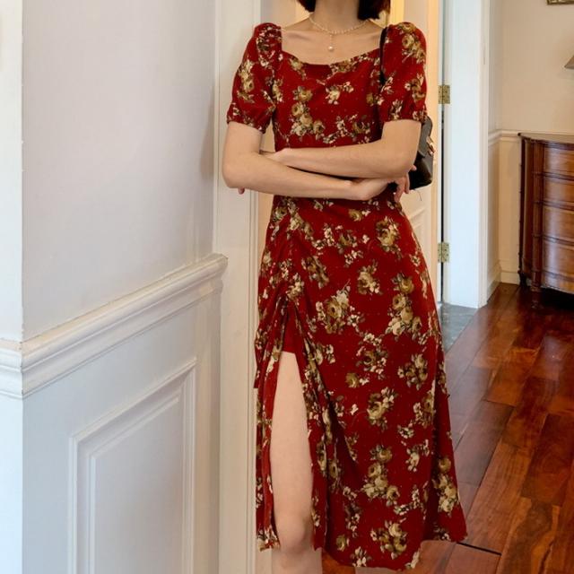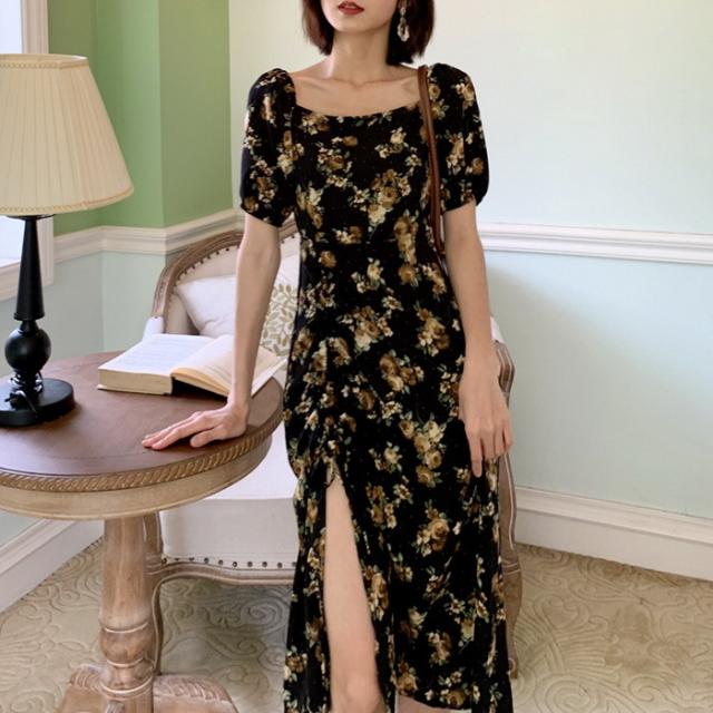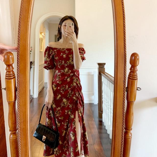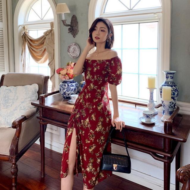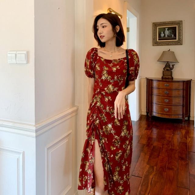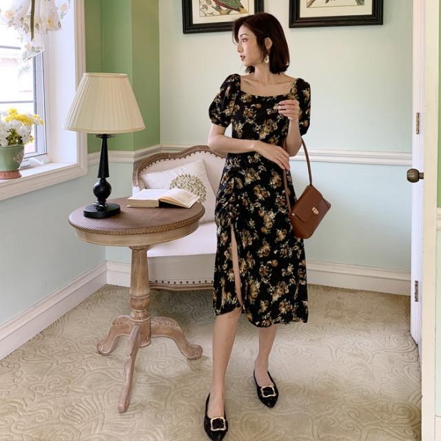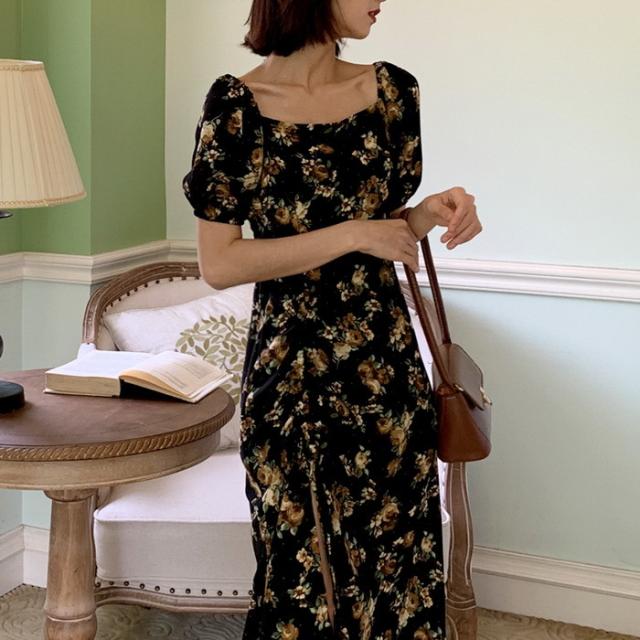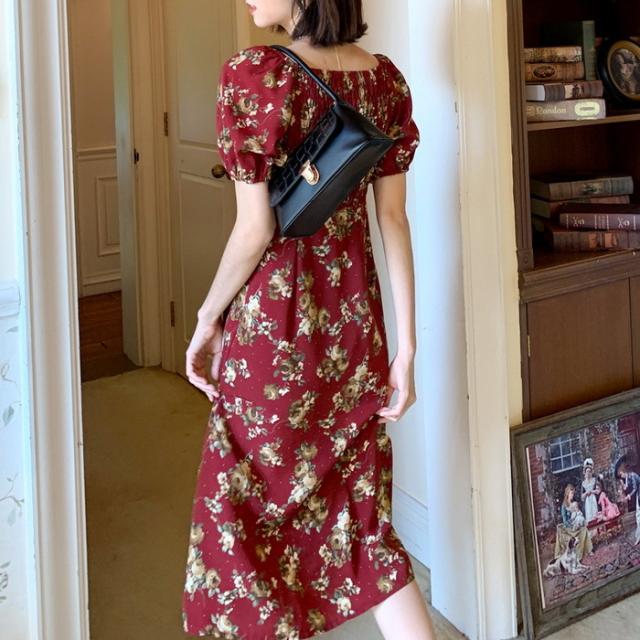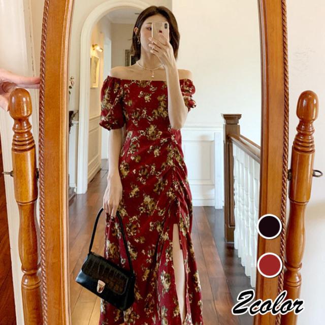ワンピース レディース 40代 マキシワンピース 春夏新作 半袖ワンピース パフスリーブワンピース 花柄スカート オシャレ韓国風 大人 結婚式 お出かけ 30代50代