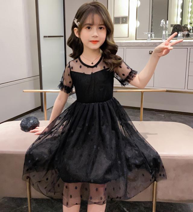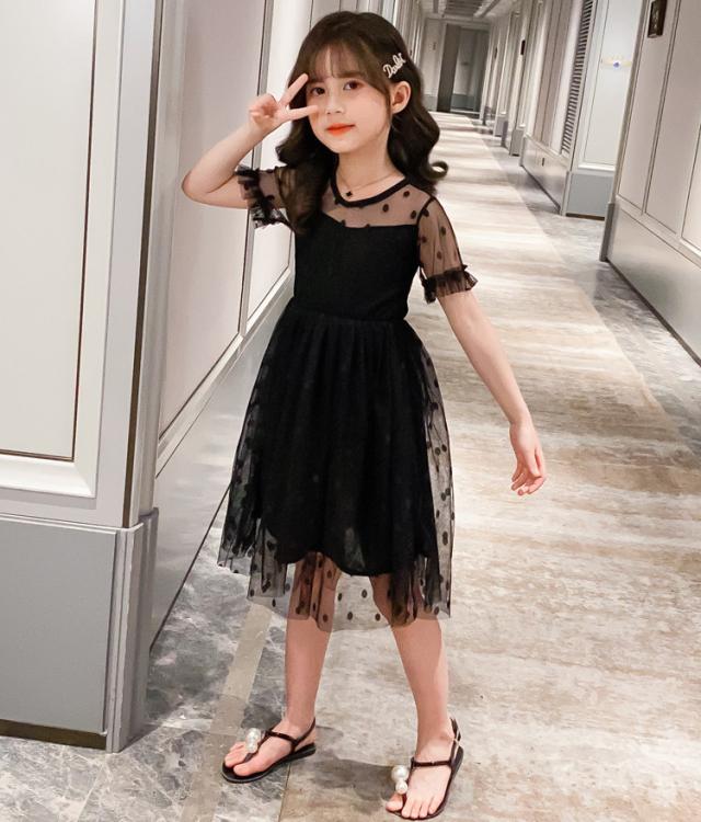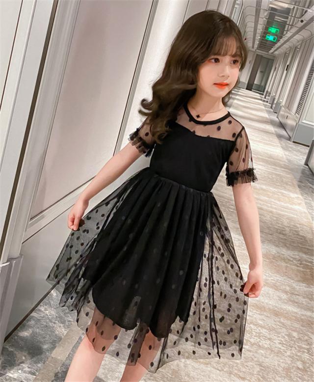子供服 ワンピース 160 韓国子ども服 キッズ 女の子 夏服 半袖ワンピース チュール 水玉 子供ドレス 結婚式 誕生日 ベビー服 ジュニア お姫様 おしゃれ 可愛い