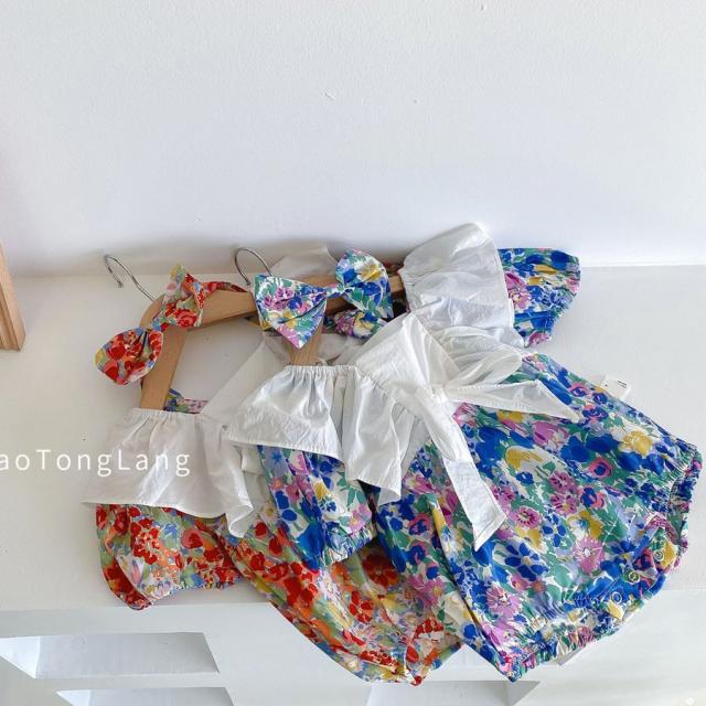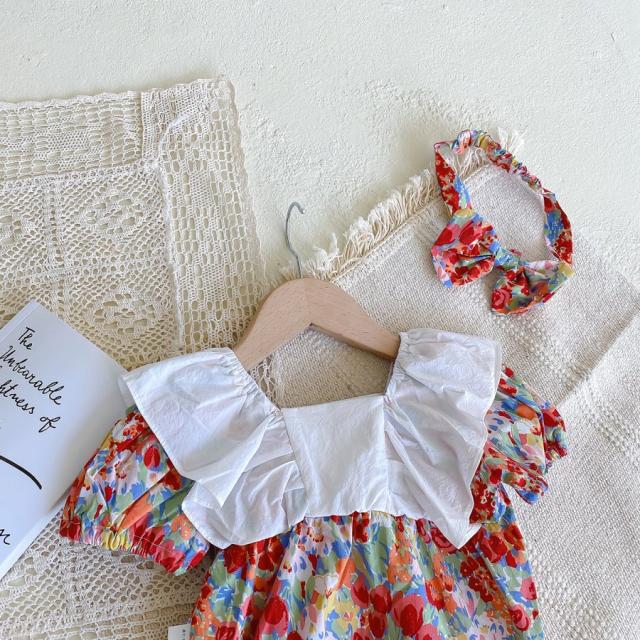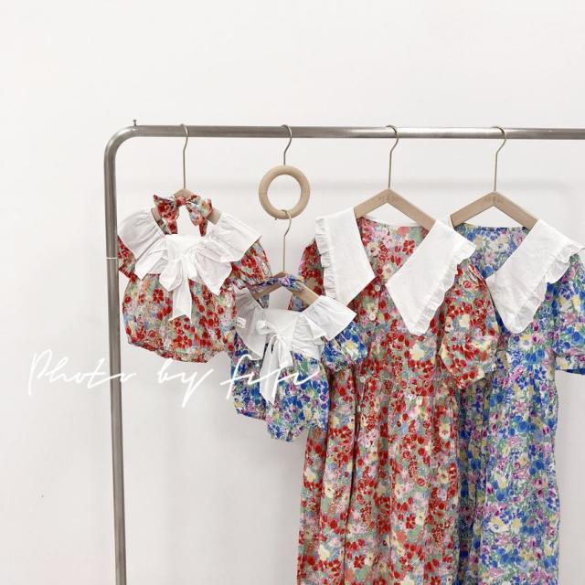 親子ペアお揃い ベビー カバオール ワンピース 赤ちゃん ママと娘 親子リンクコーデ 半袖 親子コーデ 花柄 女の子 レディース お出かけ 撮影 誕生日 母の日 可愛