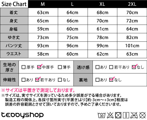 製造工程の関係上、各採寸箇所実寸(平置き)より【約-3cm〜+3cm】程度は