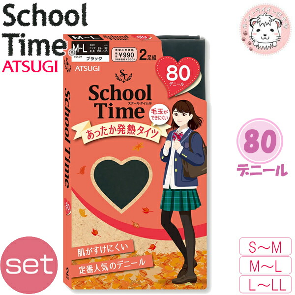 アツギ スクールタイム 80デニール スクールタイツ 2足組3セット 発熱 防寒 S-M/M-L/L-LL | ヌードトゥ 毛玉ができにくい 吸汗 FP90822P ATSUGI schoolTime