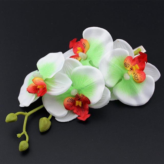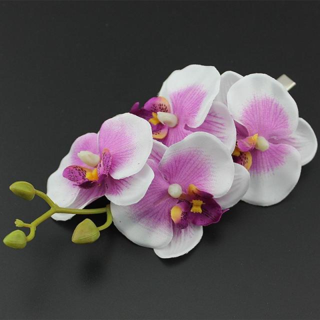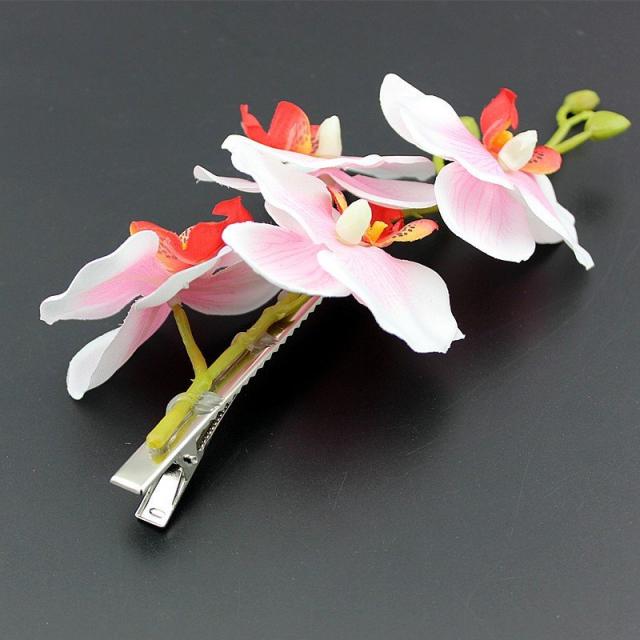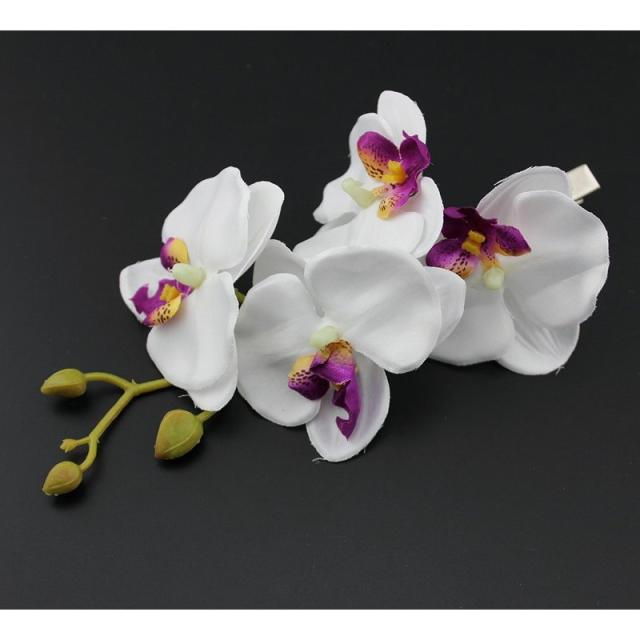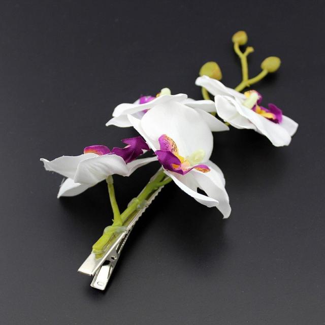 ヘアクリップ ヘアアクセサリー 胡蝶蘭 ラン 花 フラワー造花 4連 大ぶり かわいい ホワイト パープル レッド グリーン