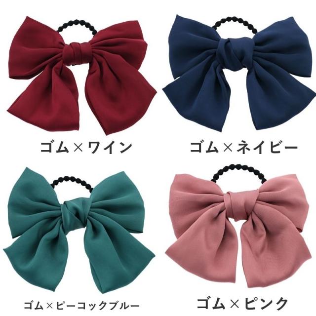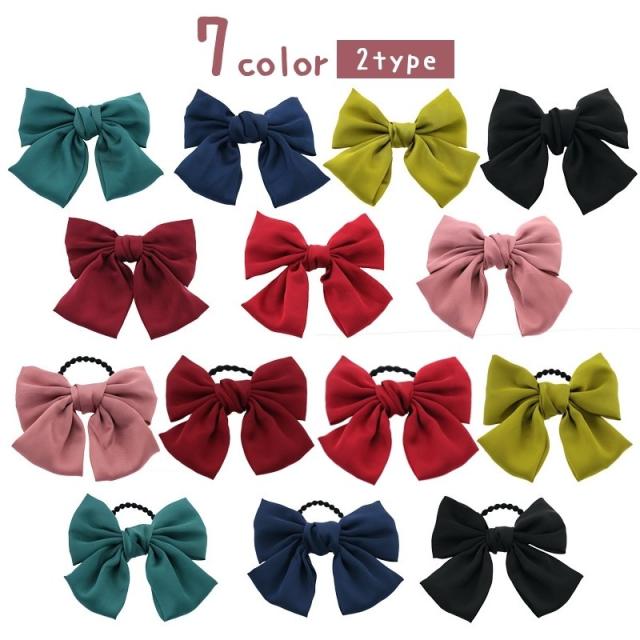 ヘアゴム バレッタ 髪飾り リボン ヘアアクセサリー レディース 女性 婦人 女の子 学生 ファッション小物 無地 単色 シンプル かわいい おしゃれ