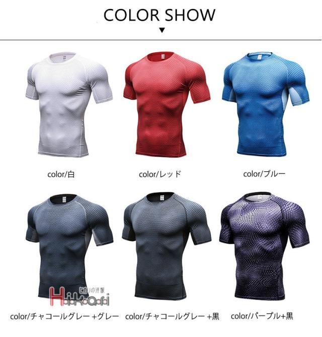 スポーツウェア メンズ 加圧シャツ コンプレッションウェア 半袖 アンダーシャツ ランニング ジム 伸縮性 吸汗 速乾