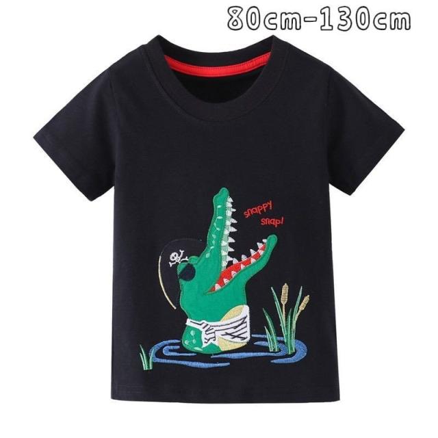 半袖Tシャツ 半袖 Tシャツ トップス キッズ 子供 子ども服 刺繍 ワニ アップリケ ブラック 海賊 ラウンドネック カジュアル 男の子 女の子 ボ