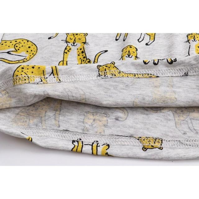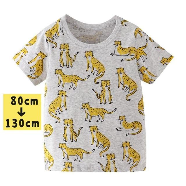 半袖Tシャツ 半袖 Tシャツ トップス キッズ 子供 子ども服 チーター アニマル プリント柄 総柄 グレー ラウンドネック カジュアル 男の子 女の