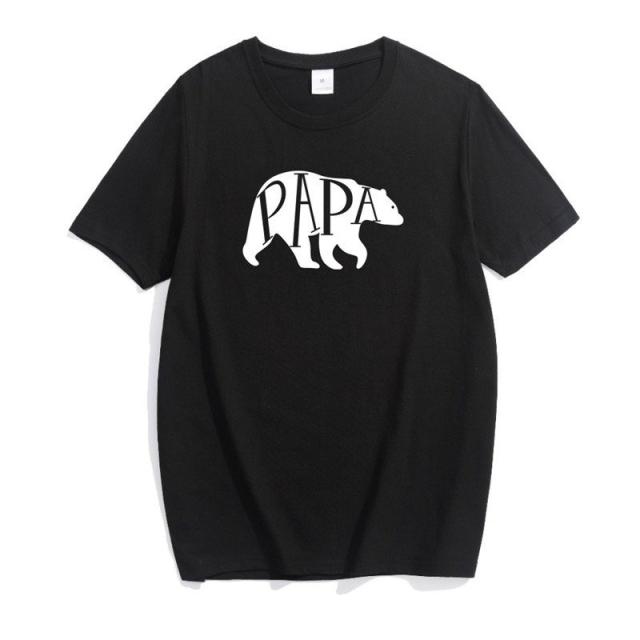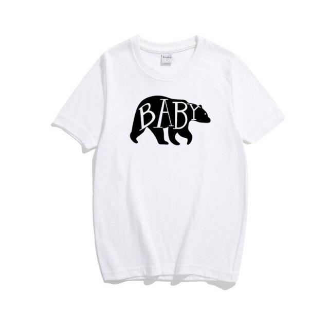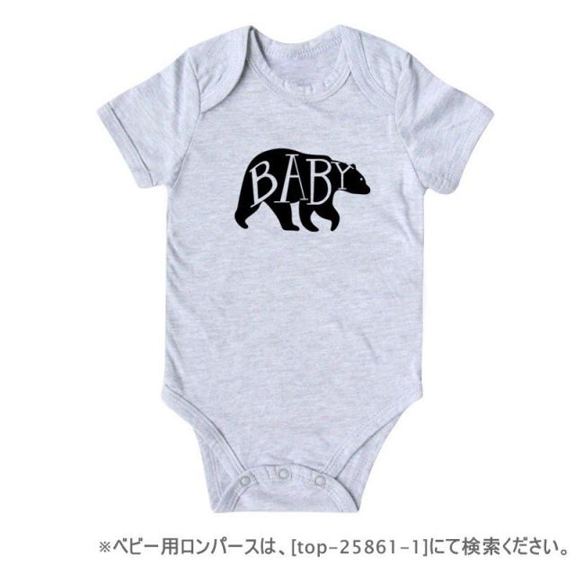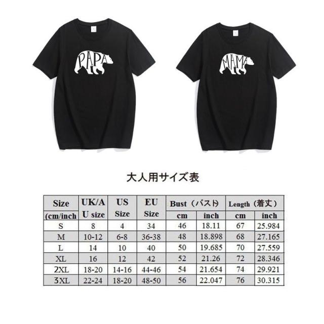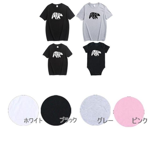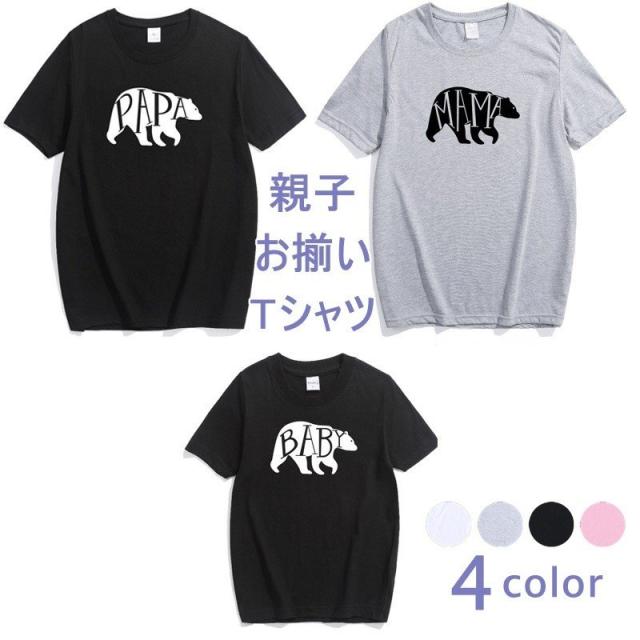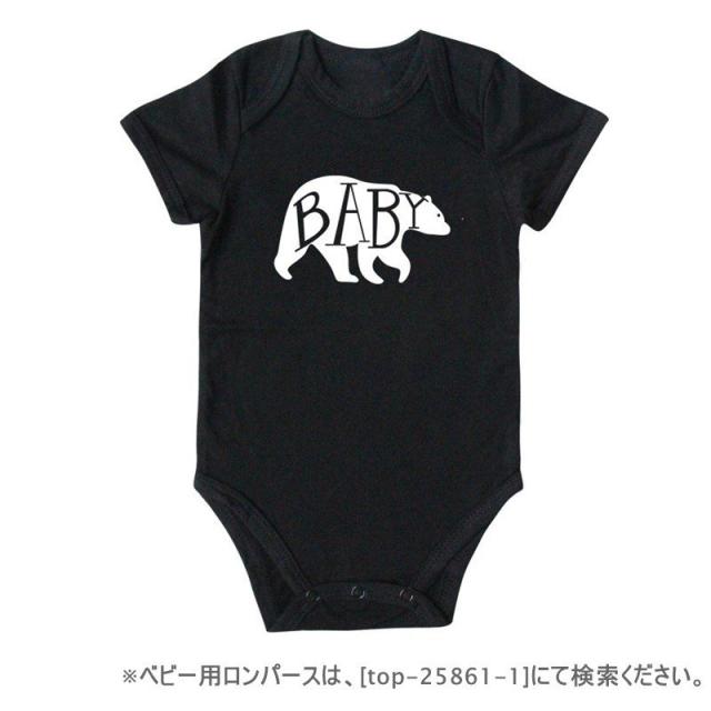 Tシャツ 大人 子ども 親子ペアルック お揃い トップス 半袖 ラウンドネック 丸首 くまプリント 黒 ブラック オシャレ