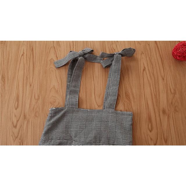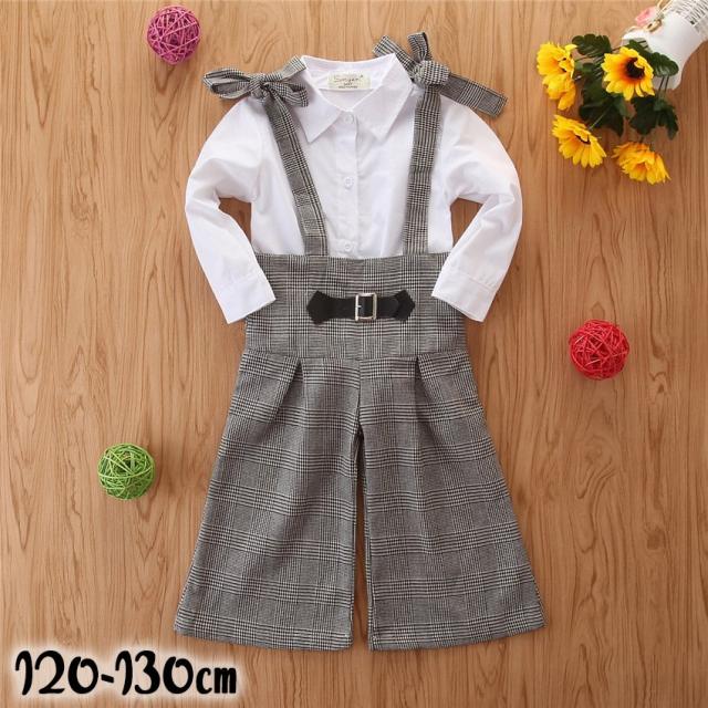 セットアップ 上下2点セット サロペットパンツ 白シャツ 子供服 キッズ ベビー 女の子 長袖 ロングパンツ ワイド チェック柄 かわいい おしゃれ
