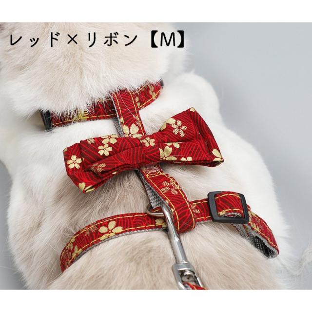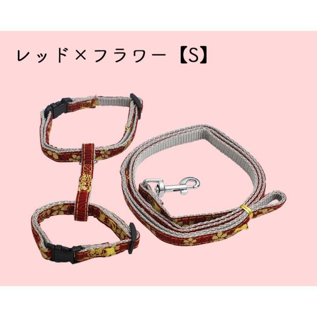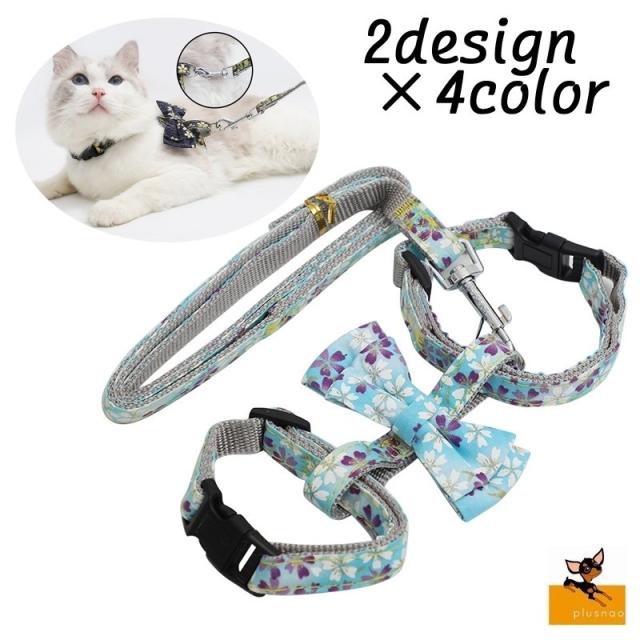 猫用ハーネス リード 2点セット ペット用品 キャットグッズ ネコ ねこ リーシュ お散歩紐 胴輪 柄入り おしゃれ かわいい リボン 花柄 フラワー