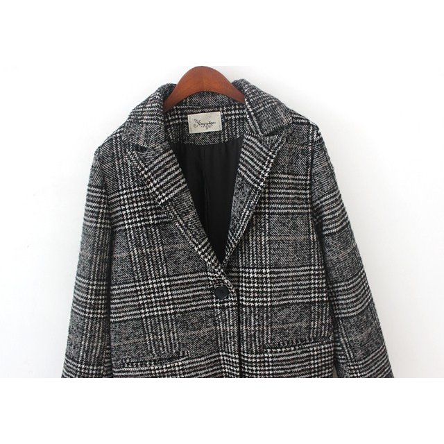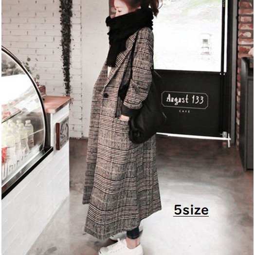 コート チェスターコート ロングコート レディース アウター 長袖 襟あり Vネック 1つボタン 1列ボタン チェック柄 千鳥格子 丈長め フロントポ