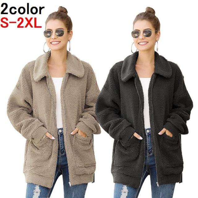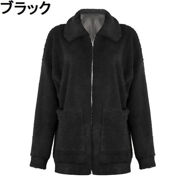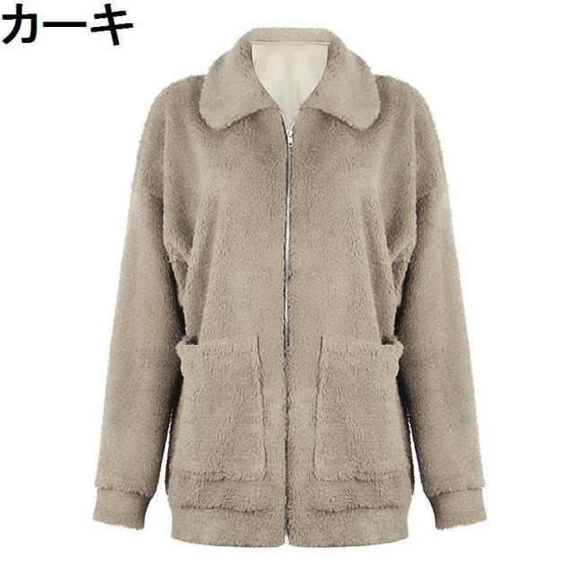 ボアコート ショートコート ジャケット フリース 長袖 レディース 女性 アウター 暖かい ゆったり 襟付き ポケット ジップアップ カーキ ブラック