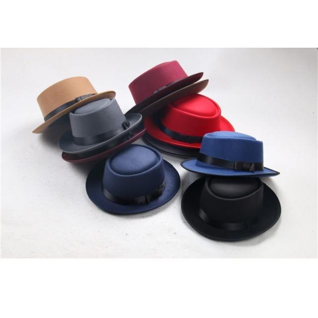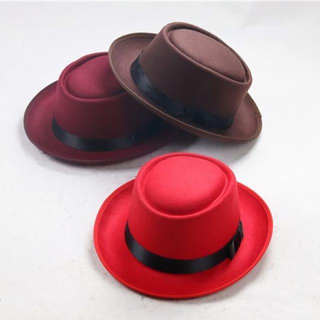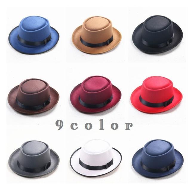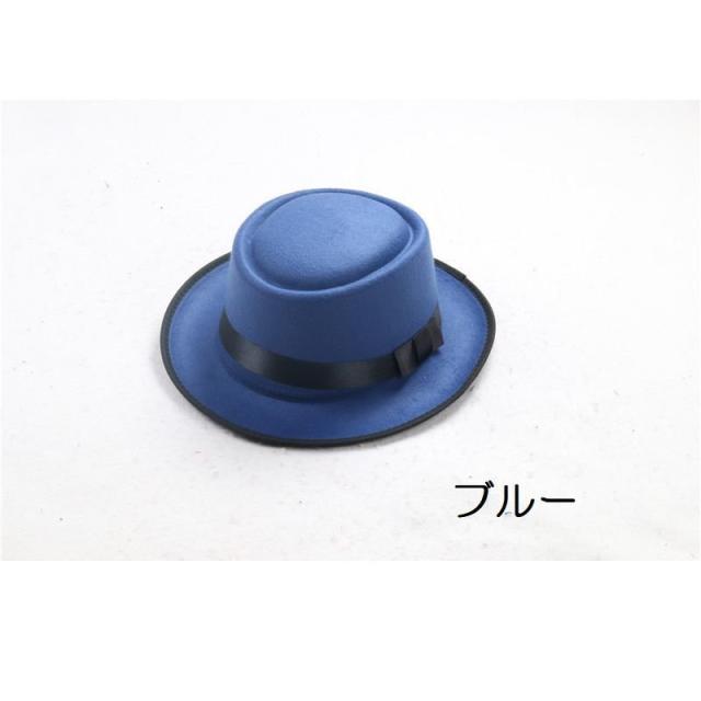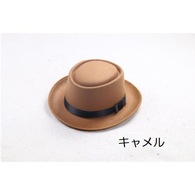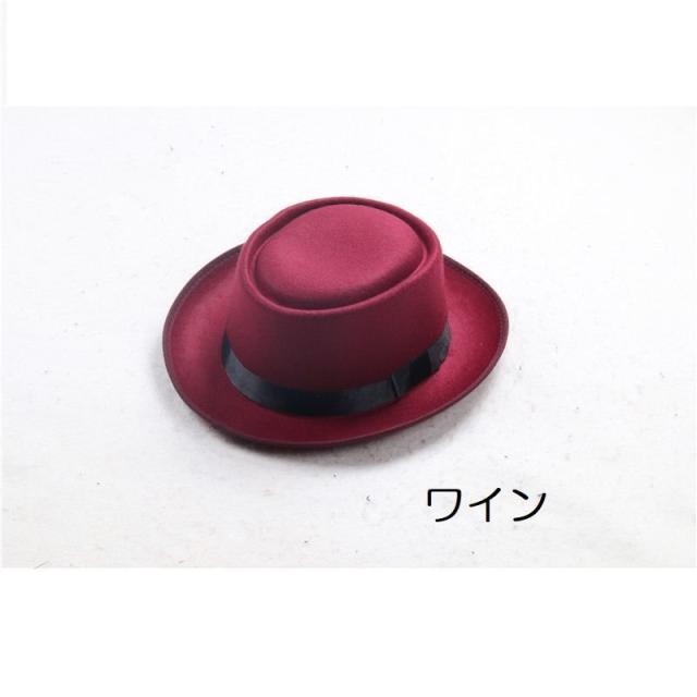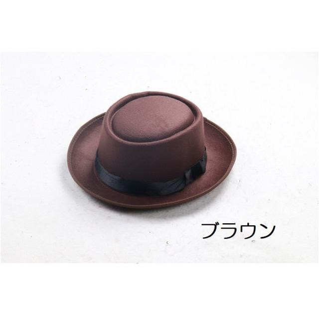 ハット 帽子 レディース メンズ ユニセックス 男女兼用 ファッション小物 ポークパイハット トップフラット フェルト調 ベルト付き つば広 無地 シ