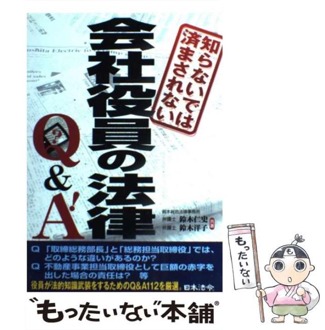 【中古】 知らないでは済まされない会社役員の法律Q&A 改訂版 / 鈴木仁史 鈴木洋子、鈴木 洋子 弁護士 / 日本法令 [単行本]【メール便送料無料】