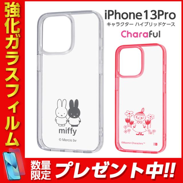 iPhone13 Pro ケース ミッフィー ムーミン ハイブリッドケース Charaful ミィ ストラップホール 耐衝撃 かわいい おしゃれ レトロ 保護 カバー iPhone13Pro ガラスフィルム付き