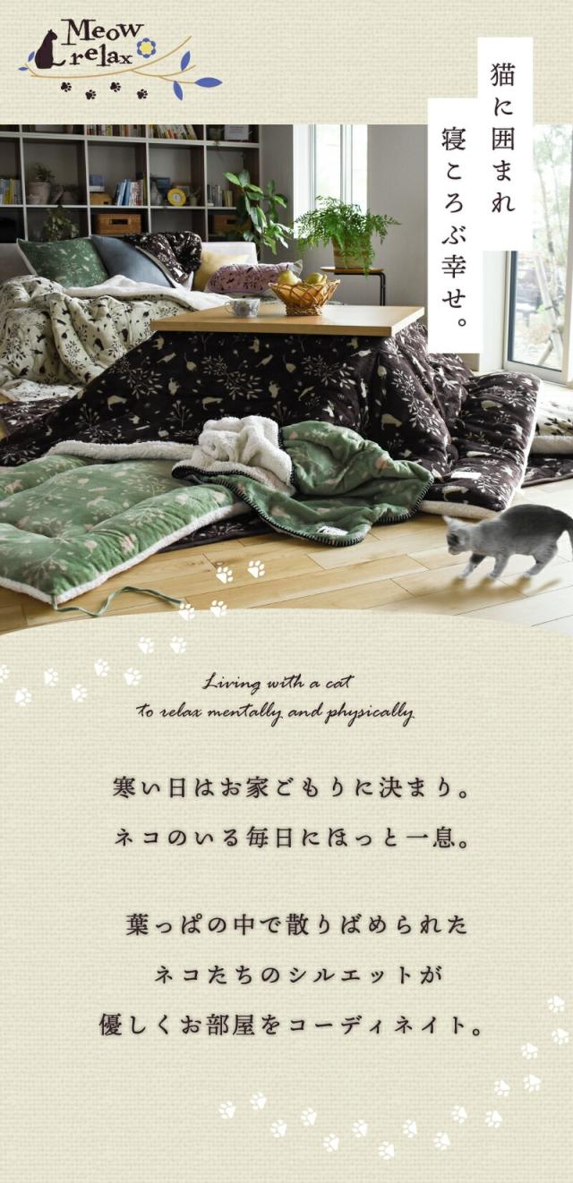 あなたはネコ派?イヌ派?こだわり安眠館オリジナルの猫柄ファブリックシリーズ。ネコ柄のデザインに手を出したいけど...子供っぽいのはちょっとイヤ。そんな人の為に大人かわいいを目指しました。インテリアも寝具も種類豊富にご用意。 | |