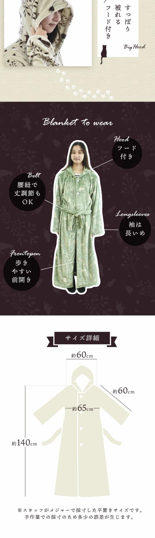 【10/8〜480円値下!】着る毛布 レディース 猫 ミャオリラ あったか 冬 ルームウェア フランネル ねこ ねこ柄 モノトーン フード付き 前開き