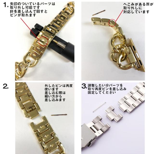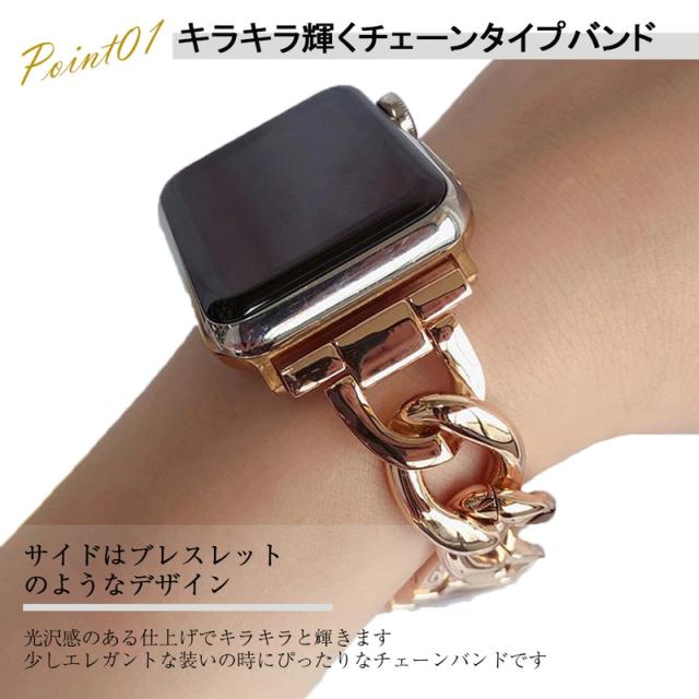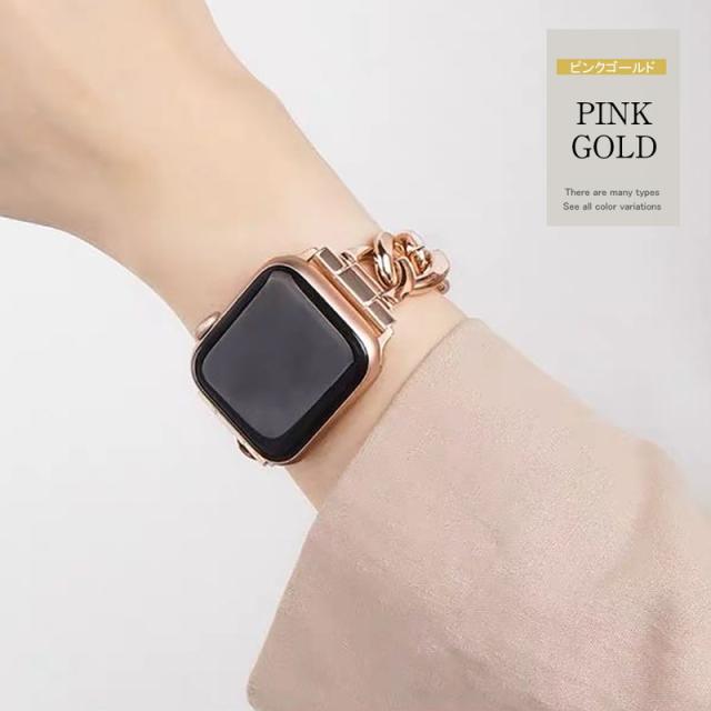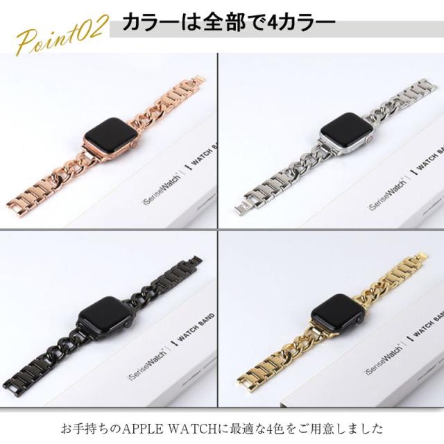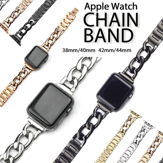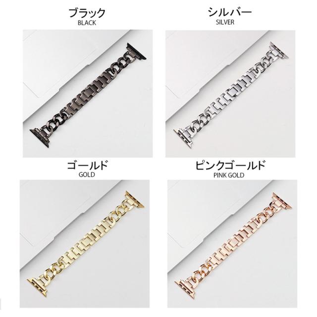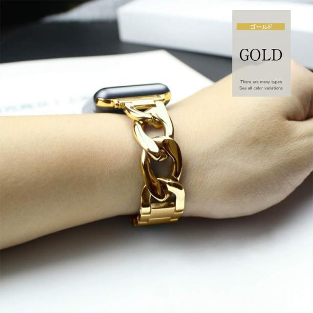 アップルウォッチ バンド チェーン おしゃれ Apple Watch ベルト おしゃれ ゴールド シルバー ブラック カジュアル ビジネス 取替 着せ替え カスタム 腕時計