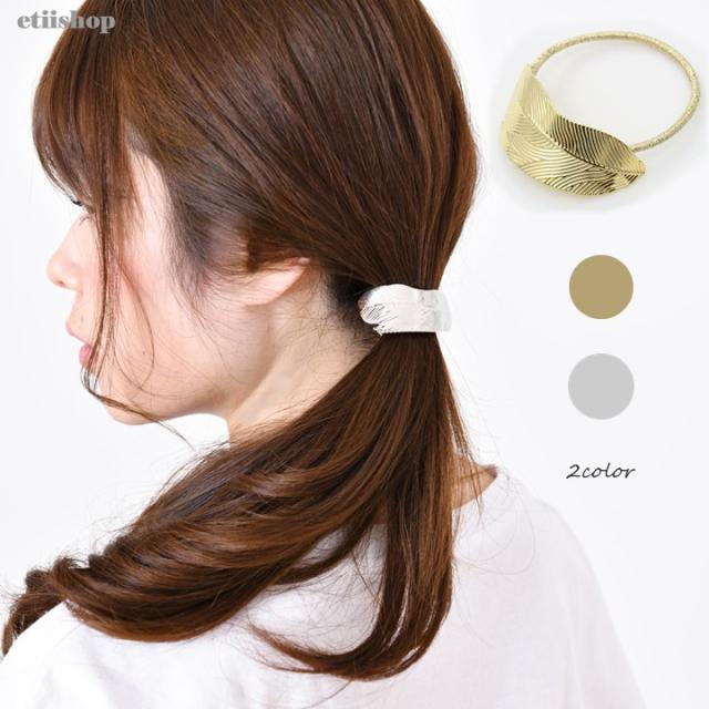 レディース アクセサリー ヘアゴム フェザー カーブ プレート