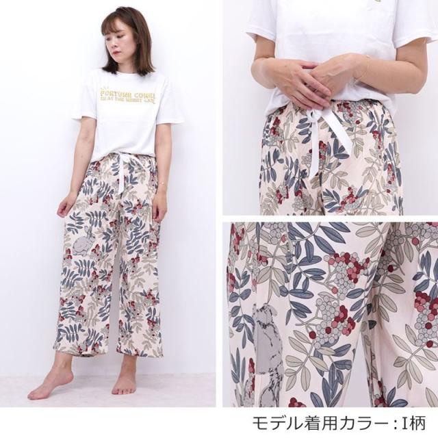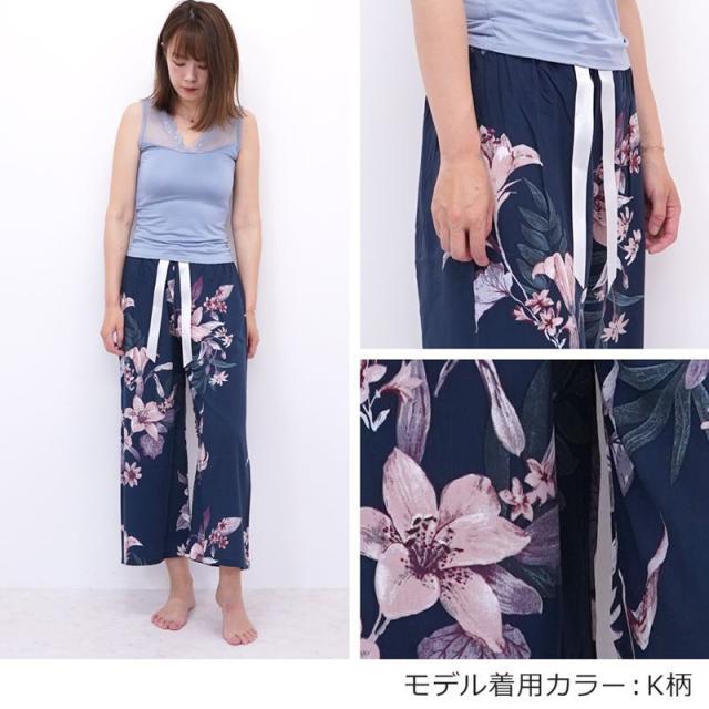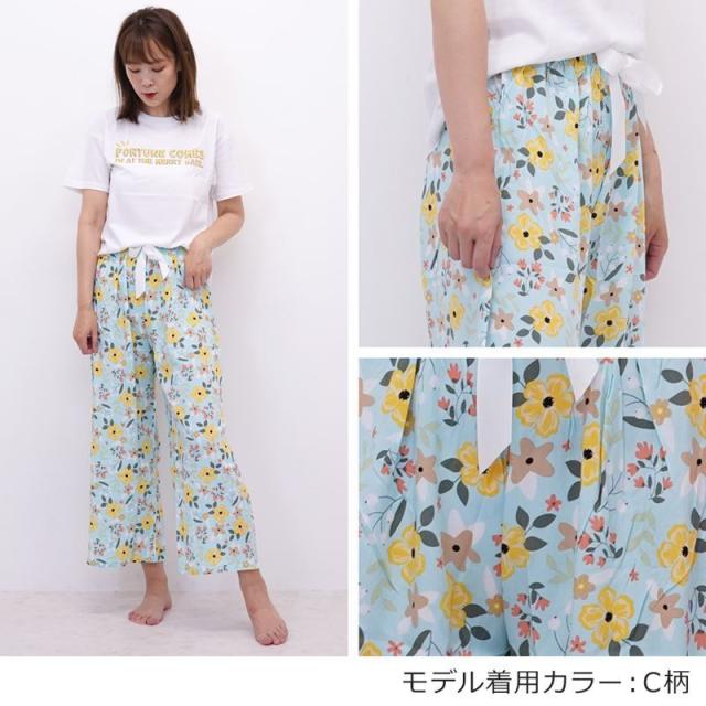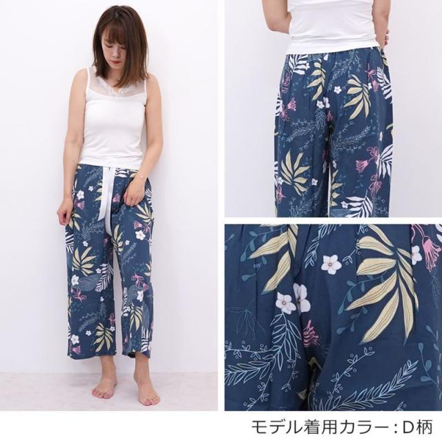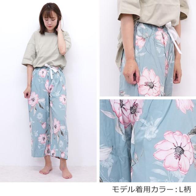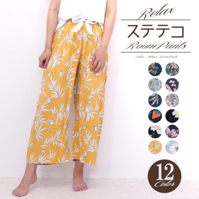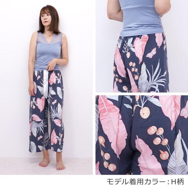 リラックスパンツ レディース ステテコ ルームパンツ 秋 リラックス 部屋着 花柄 ハイビスカス シャレテコ カプリパンツ ひざ下 七分丈