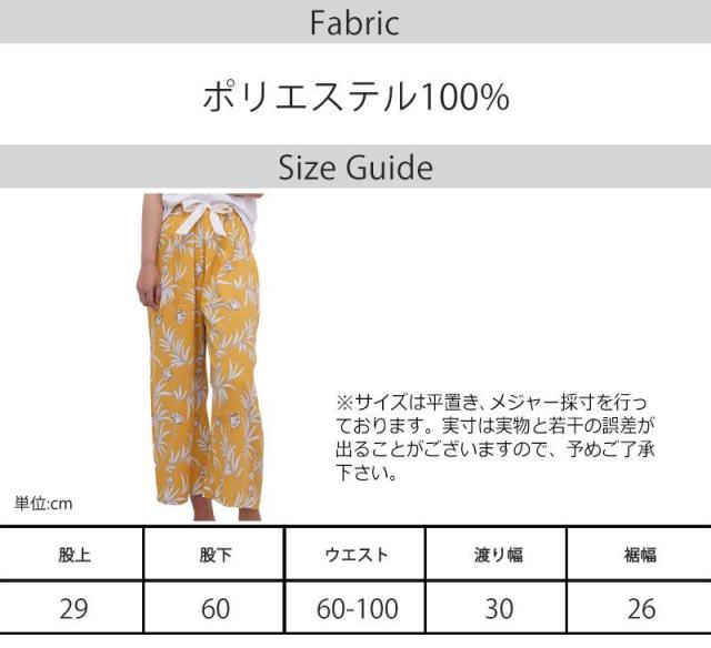股上:約29cm 股下:60cm ウエスト:約60-100cm 渡り幅:約30cm 裾幅:26cm