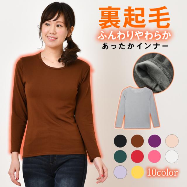 裏起毛インナーレディース 裏起毛 インナー レディース トップス 裏起毛トップス Uネック クルーネック カットソー 無地 長袖 長袖シャツ 長袖tシャツ 大きいサイズ
