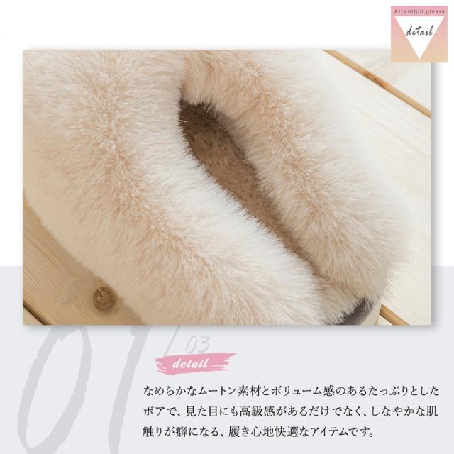 ファー部分のボリューム満点!ムートン風のスリッパです