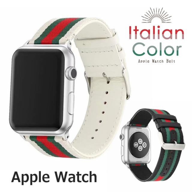 アップルウォッチ バンド おしゃれ イタリア イタリアンカラー 38mm 40mm 42mm 44mm 実用的 トリコロール イタリー ナイロン 合皮 エコレザー Apple Watch