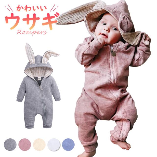ロンパース 新生児 赤ちゃん 60 70 80 90 女の子 着ぐるみ 男の子 うさぎ 秋 秋冬 おしゃれ カバーオール ツナギ 綿 コットン かわいい 出産祝い