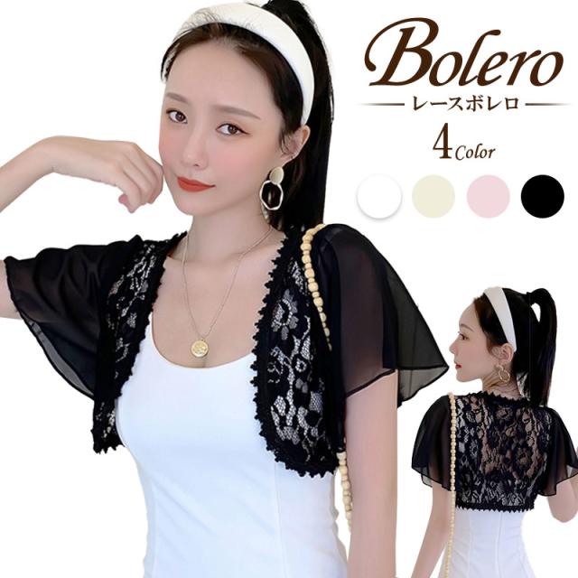 ボレロ 結婚式 ボレロカーディガン 夏 半袖 uv バラ パーティー フォーマル レース ブラック ホワイト ピンク 二次会 パーティードレス