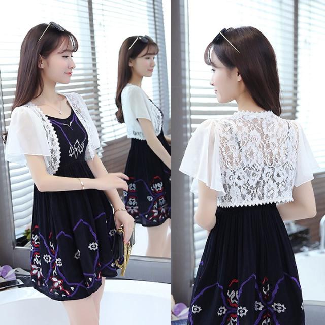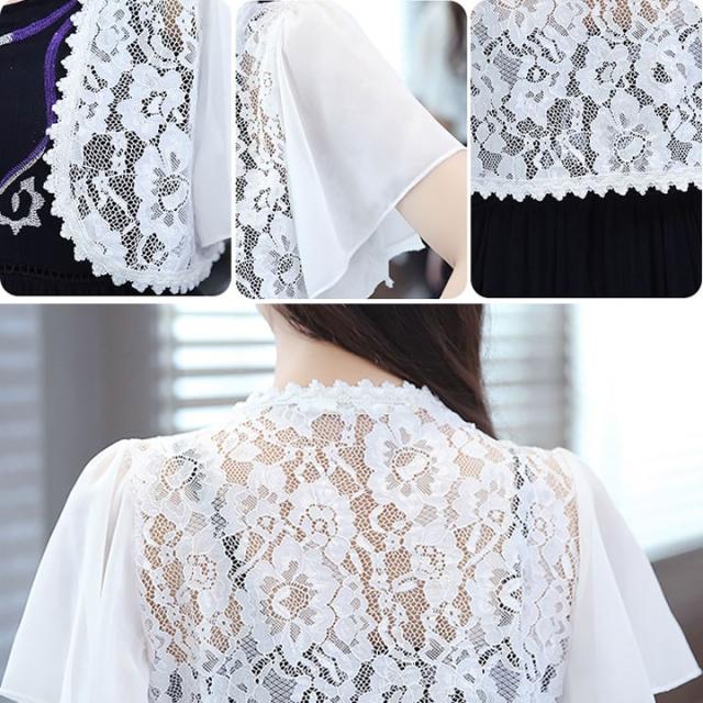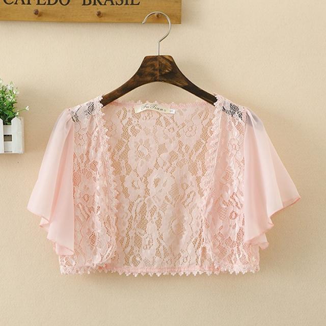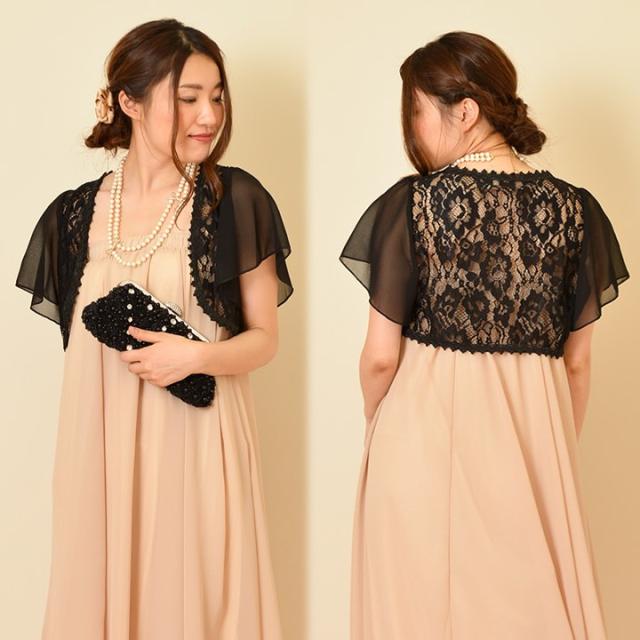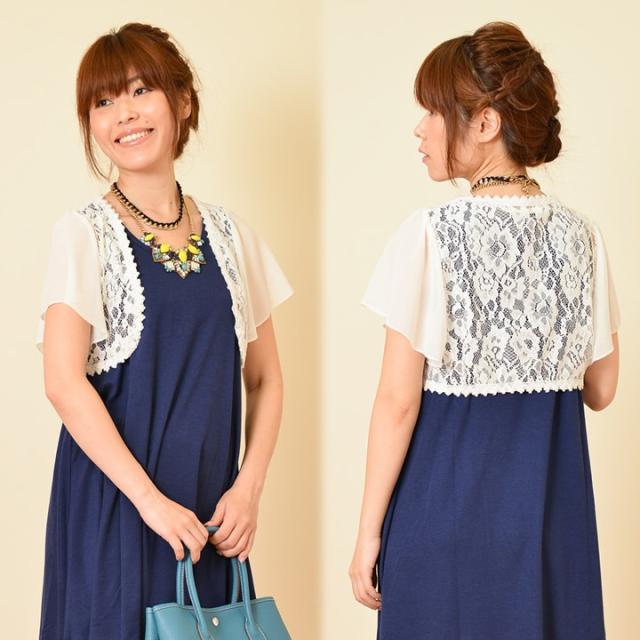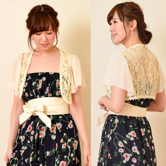 サラっとはおれるレースのボレロは1枚持っているととっても便利、袖シフォンで二の腕カバー大人の女の必需品です