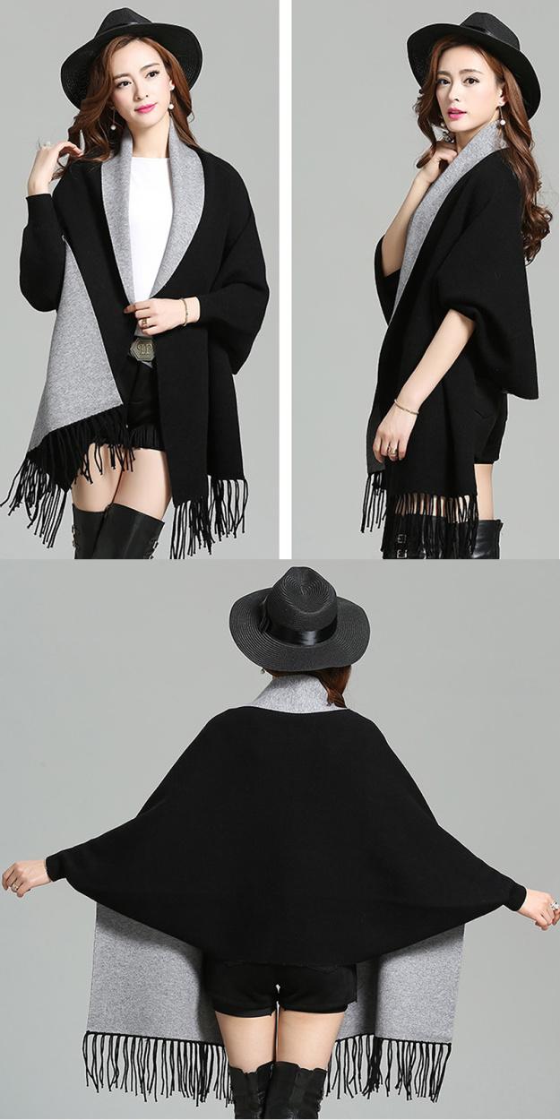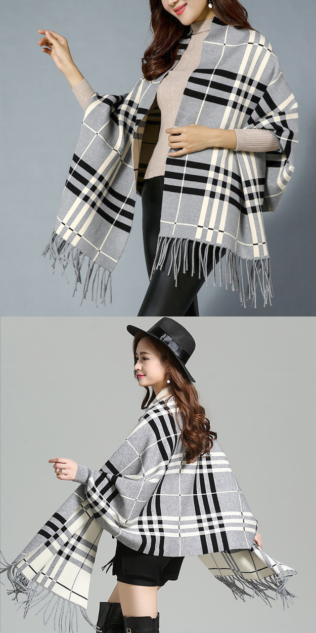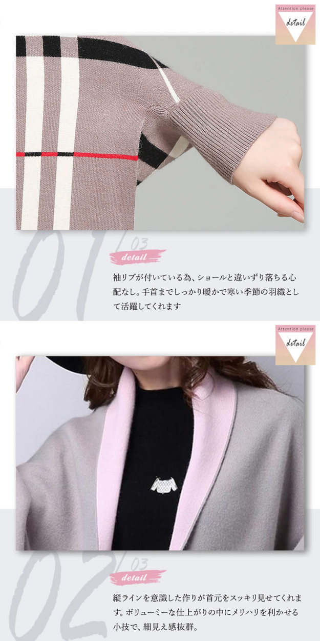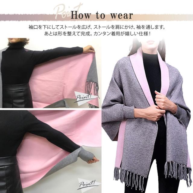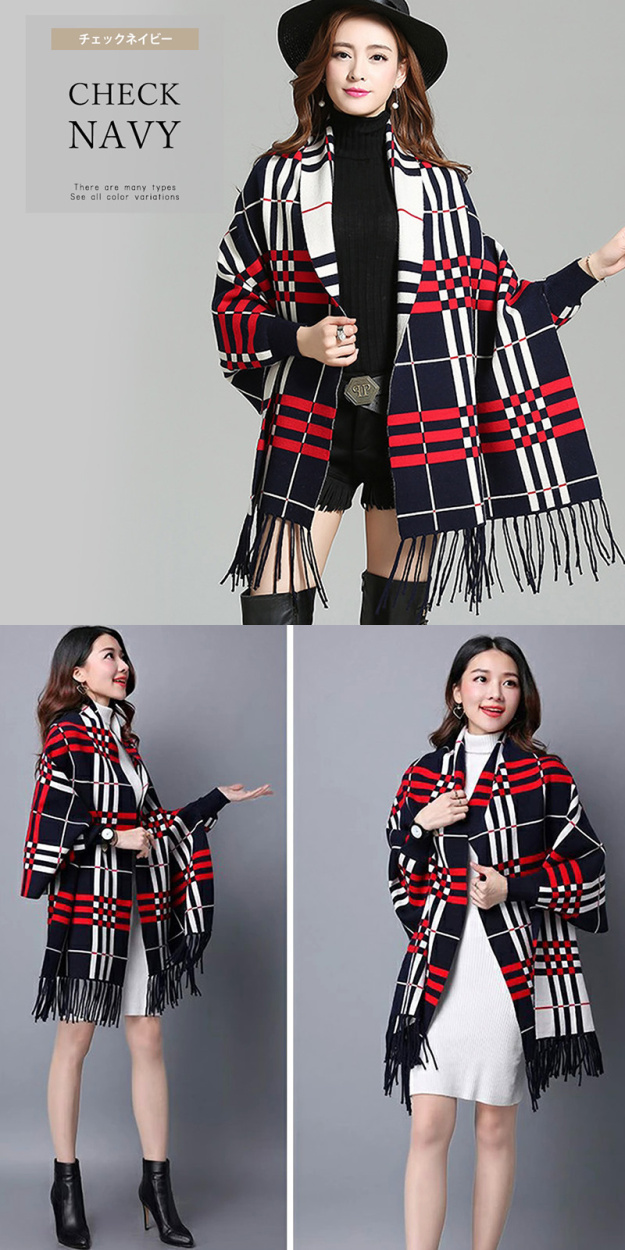 ストール 風カーディガン レディース ストール カーディガン 着る ストール ロング 袖付き 大判 ショール チェック 羽織 マフラー ポンチョ 黒 ブラック