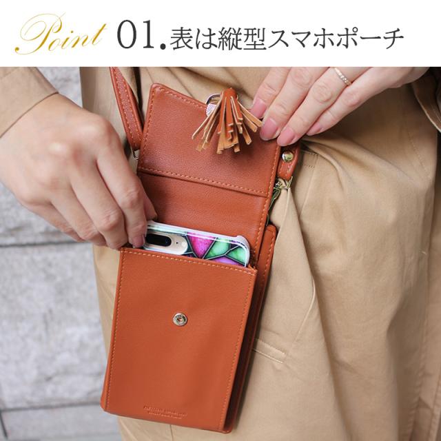 スマホとお財布を一緒に持ち歩ける便利な縦型ショルダーバッグです
