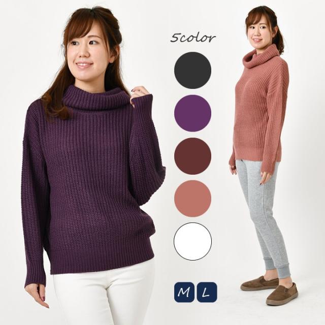 レディース トップス ニット セーター タートル ボリュームタートル 秋冬 ハイネック シンプル ドルマンスリーブ 長袖 無地