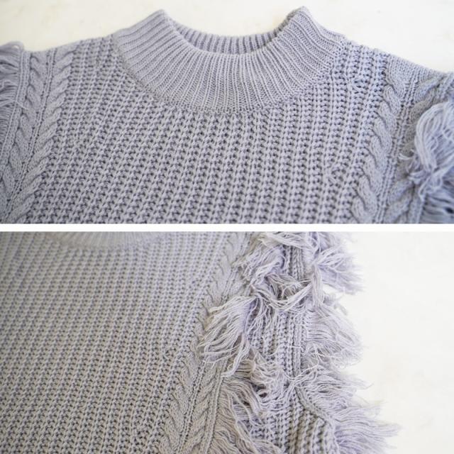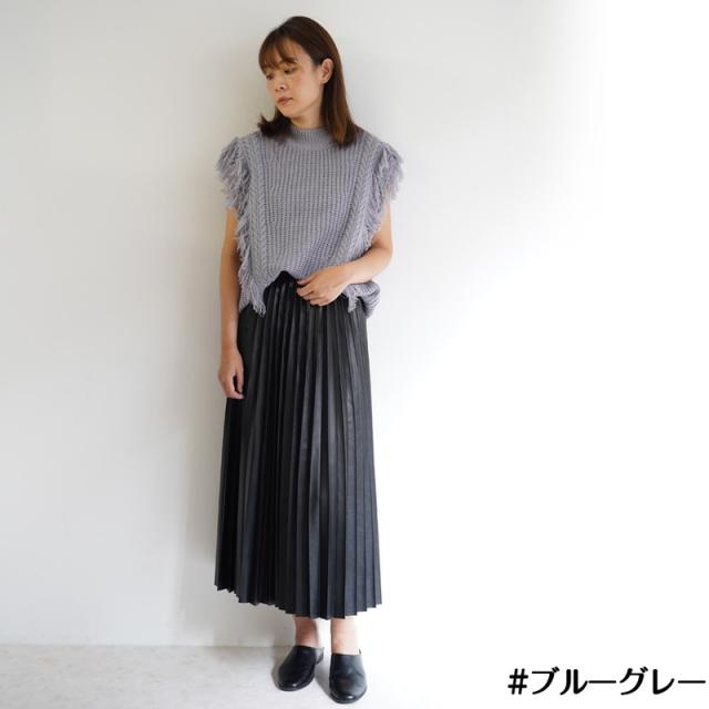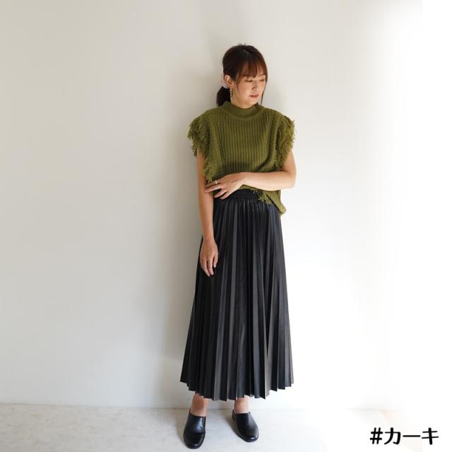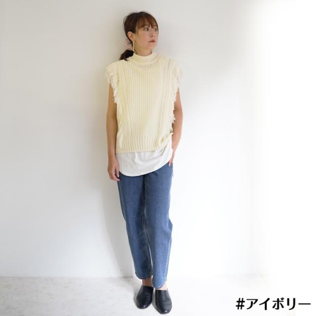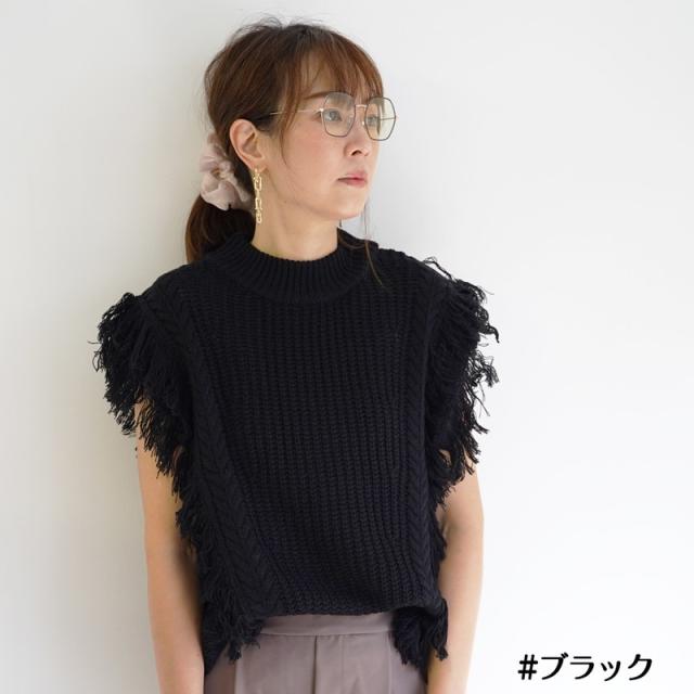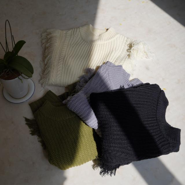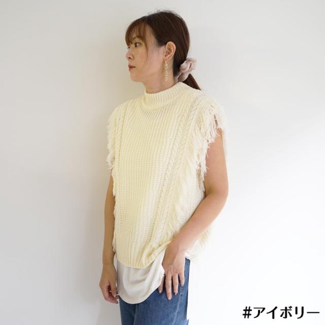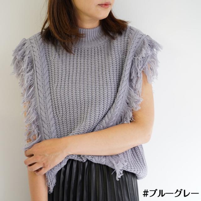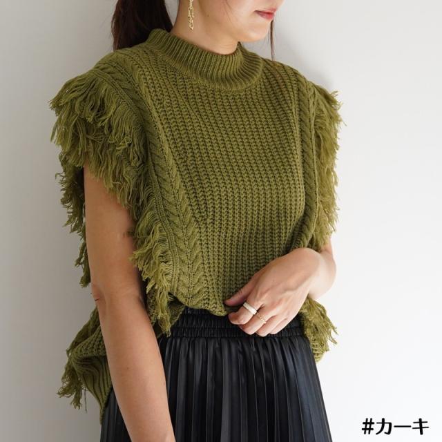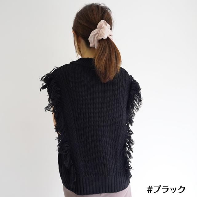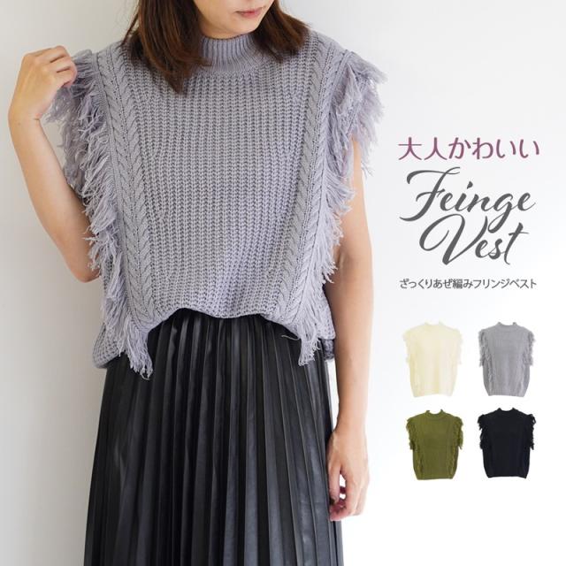 ざっくり編みのフリンジ付きニットベストです