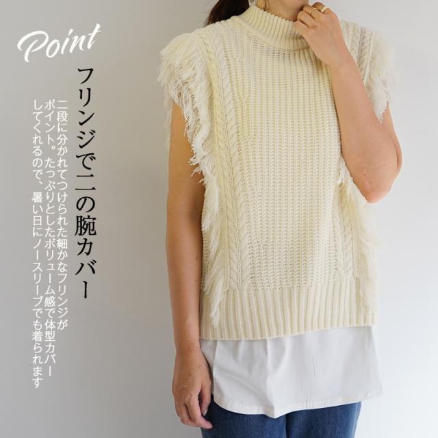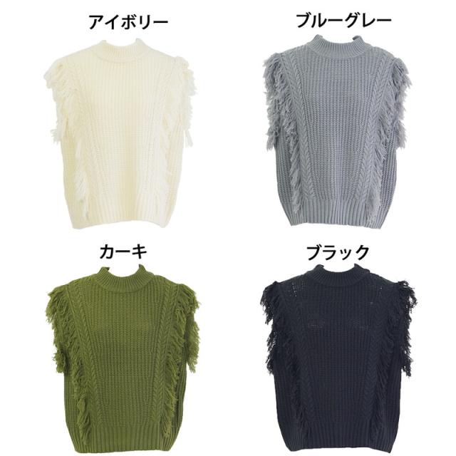 ニットベスト レディース 大きいサイズ フリンジ 秋 おしゃれ 秋冬 べスト ニット オーバー ニットウェア ノースリーブ 袖なし
