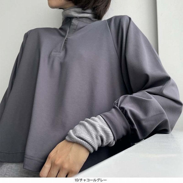 目のつまった素材で衿をバンドカラーにすることで、スポーティになりすぎず、
