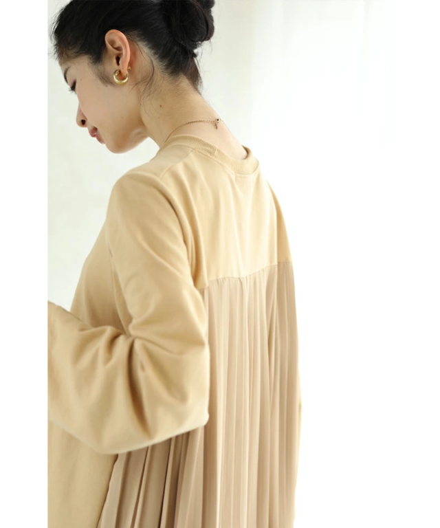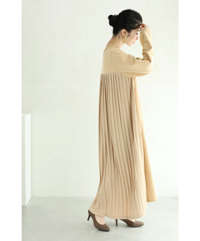 新作 新着 再入荷 CAWAII FRENCHPAVE フレンチパヴェ エレガント ベーシック カジュアル 可愛い かわいい カワイイ おしゃれ オシャレ お洒落 個性 個性的 定番 ベーシック 大人かわいい 大人可愛い 上品 女性らしい デザイン スタンダード ナチュラル きれいめ キレイめ シンプル フェミニン なびく後ろプリーツ ロング ワンピース 長袖 長そで ロング袖 丸首 クルーネック S M L 2L LL XL フリーサイズ フリー 小さめ 小さめサイズ小さい 小さいサイズ 低身長 痩せ ほっそり 小柄 細身 標準サイズ 大きめシルエット 大きい 大きめ ビッグシルエット ぽっちゃり F サイズ自由 秋冬 春 秋 冬 秋服 秋物 冬服 冬物 ベージュ 無地 ワンカラー ワントーン 日常着 普段着 日常使い ヘビロテ 毎日着れる