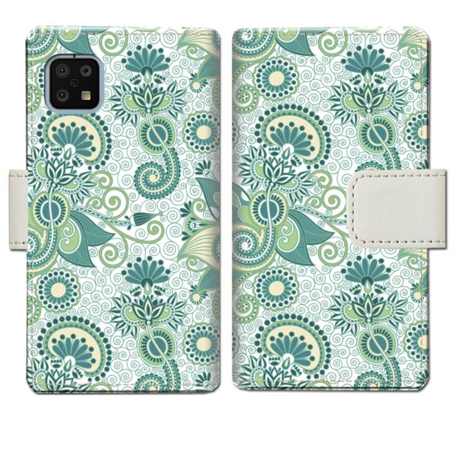 AQUOS sense6 SHG05 SH-54B SH-M19 _ AQUOS sense6s SHG07 共通 - グリーンペイズリーデザイン - 手帳型 スマホケース 手帳ケース 手帳カバー スマホカバー