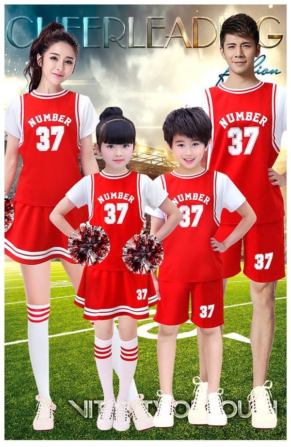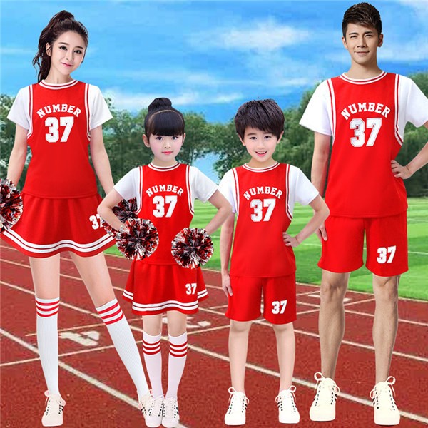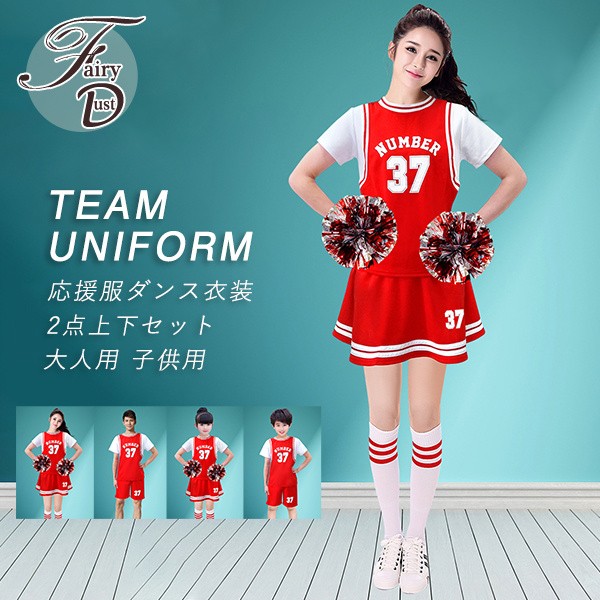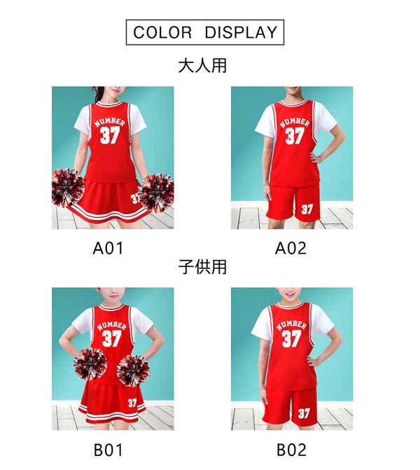 チアガールコスプレ衣装 男女兼用 応援服ダンス衣装 チアリーダー 大人 ダンスウェア 体操服 キッズ 子供 運動会 2点上下セット ステージ服