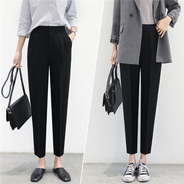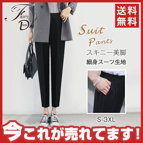 レディース ビジネスオフィスパンツ 春秋九分丈 スーツズボン ウエストゴム 仕事 カジュアル通勤スリム スキニー美脚 細身スーツ生地