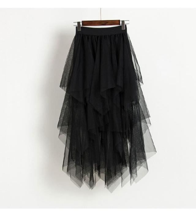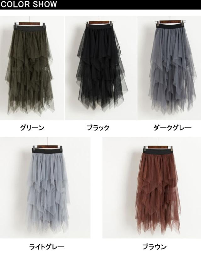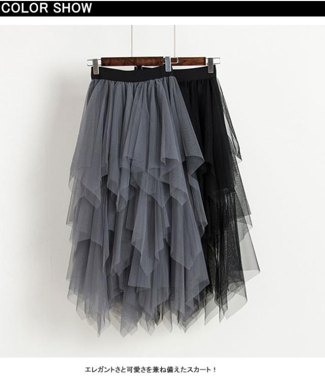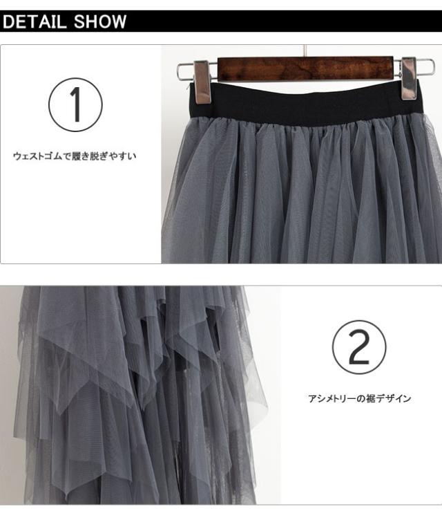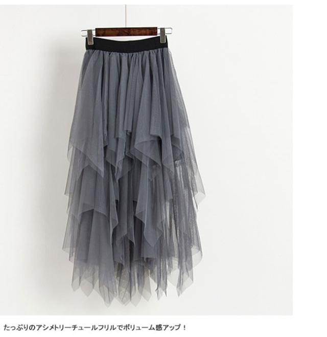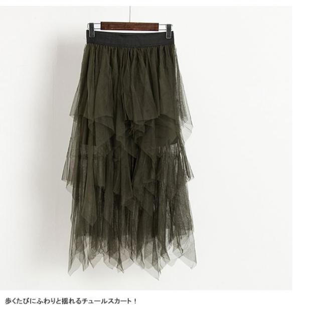 レディースチュールスカート ロングスカート 膝下丈 無地 ミモレ ハイウェスト 女らしい ロング丈 春秋