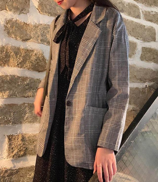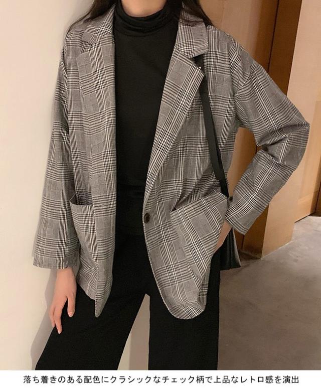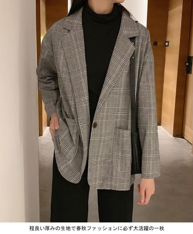 スーツジャケット テーラードジャケット チェック柄 レディース ブレザー グレンチェック ゆったり 女性 ジャケット アウター 春秋 スーツ