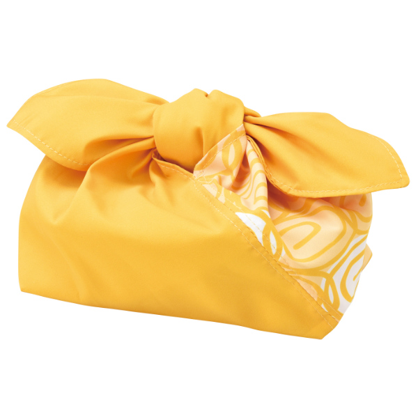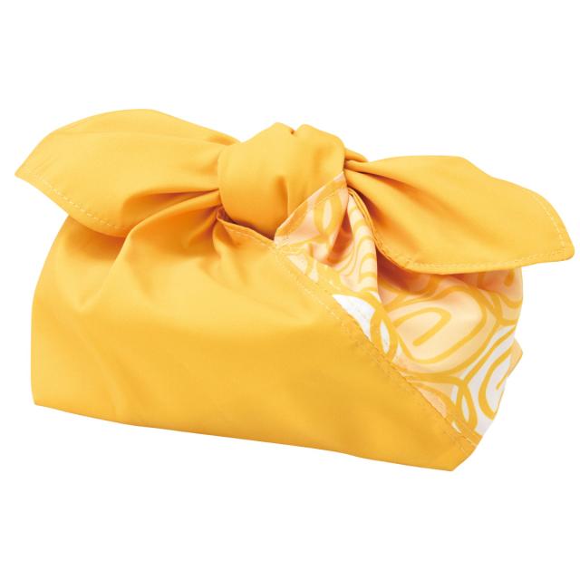 よーく見るとお弁当のおかず、たまご焼きの柄になっています。使い方を工夫すると自由に包めるのでお弁当箱は勿論、手土産をお洒落に包めたり出来るのでとても便利です。