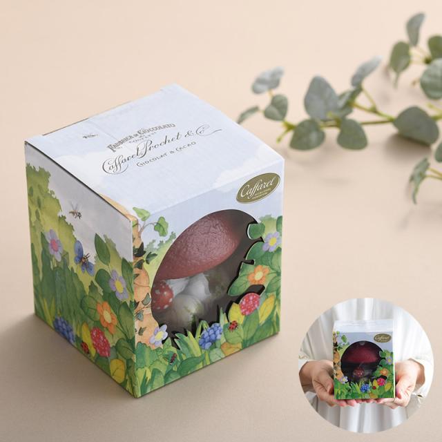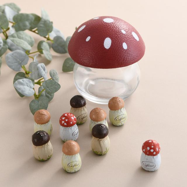 おとぎ話のようなテイストのきのこ型ポットに、かわいいホイルに包まれたジャンドゥーヤクリーム入りのミルクチョコレートが9粒。カファレルの人気商品です。