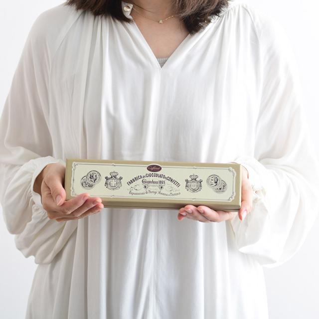 ベルベッドのような滑らかな舌触りが特徴のジャンドゥーヤ。イタリアらしいクラシックなパッケージに、ジャンドゥーヤとジャンドゥーヤビターをアソートしたチョコレートボックスです。